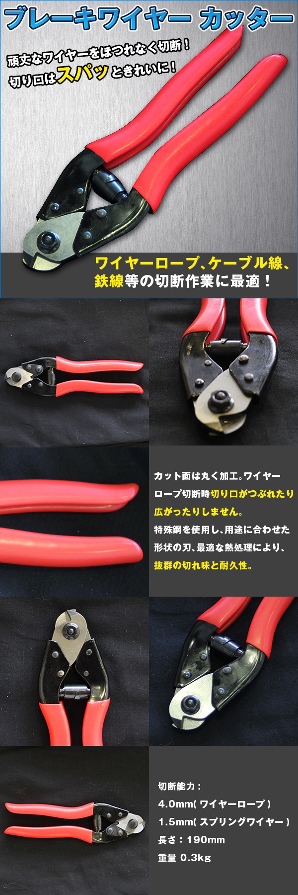 ブレーキワイヤーカッター ケーブルカッター 赤 切断 工具 ワイヤー 内線工事 外線工事 ラバー シフトケーブルカット ブレーキケーブル