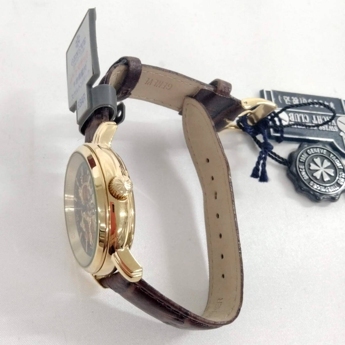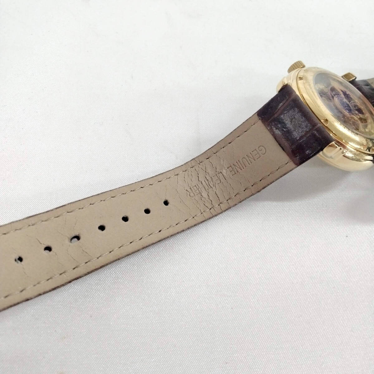 【サイズ】 ■ケース径:約38.7mm (リューズ除く) ■腕周り:約18cm (最大) ※素人採寸になりますので、多少の誤差はご容赦下さい。 【状態】 ■未使用ですが、長期保管に伴うキズやヨゴレ、臭い等があります。 ■ベルトには劣化がみられます。 【動作】 ■あり ※動作「あり」の場合は、現在動作中、または巻き上げ・充電により動作しています。 ただし、針・表示が動いているか程度の確認しか行っておりませんので、適正な動作保証はできません。 精度・日差を始め、内部機械の詳細な状態は不明です。 また、出品時の動作表示ですので、クオーツ時計の場合は到着時に電池切れとなる場合があります。 【付属品】 ■本体、ケース、紙類 ※写真にあるものが全てになります。 ※商品に関して詳しい知識があるわけではありません。 ※基本的に動作保証等は一切できませんので、ご納得頂けない場合は入札はご遠慮ください。 ※輸送事故等に関しましては当方で補償はできませんので、運送会社様にご連絡をお願い致します。 ※余程の事が無い限り返品返金対応はできませんので、予めご了承ください。 |