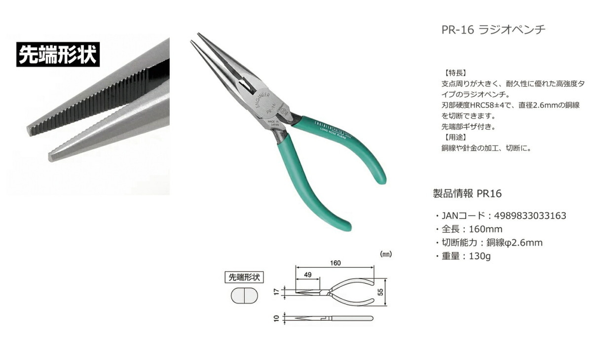 〈エンジニア〉ラジオペンチ150mm PR-16 JAN:4989833033163