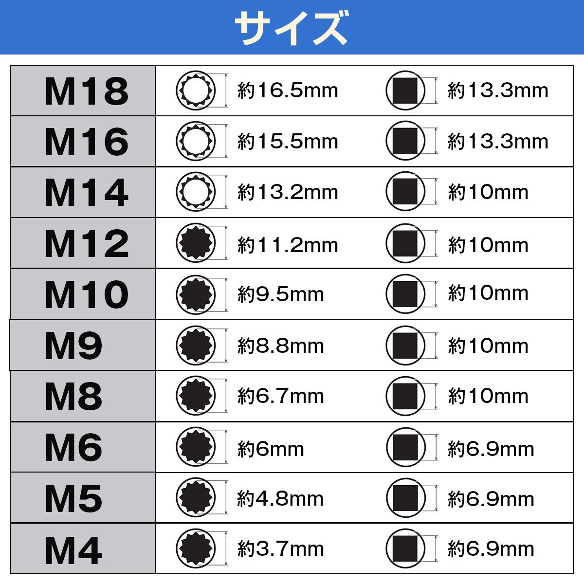 3/8インチ:8mm、9mm、10mm、12mm、14mm