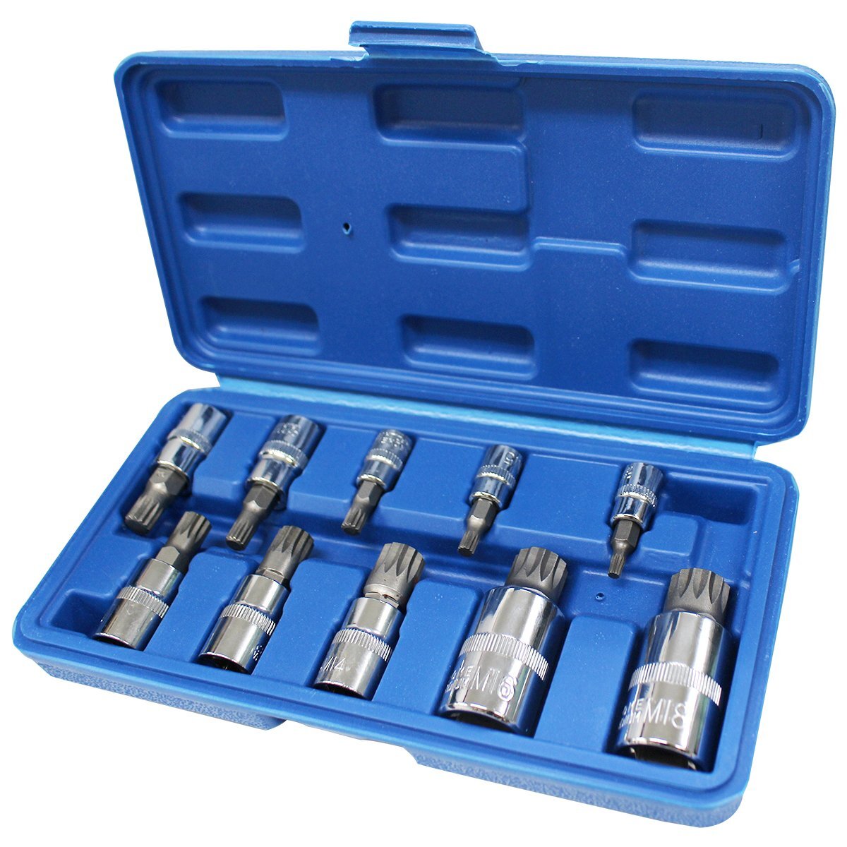 10本セット トリプルスクエア スプライン 12ポイント ソケット ビット 自動車 バイク メンテナンス 特殊工具 SST ケース付