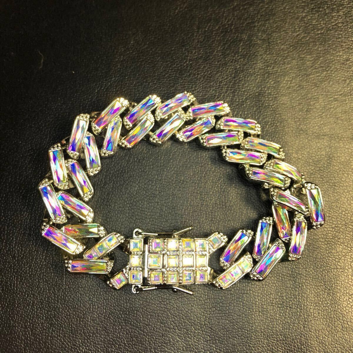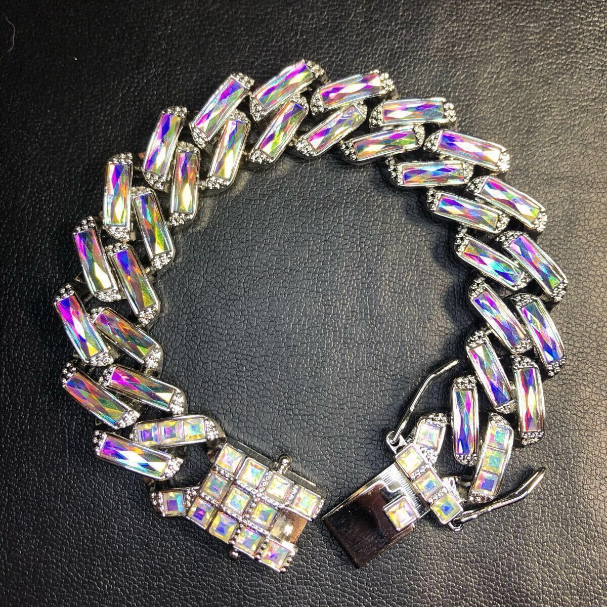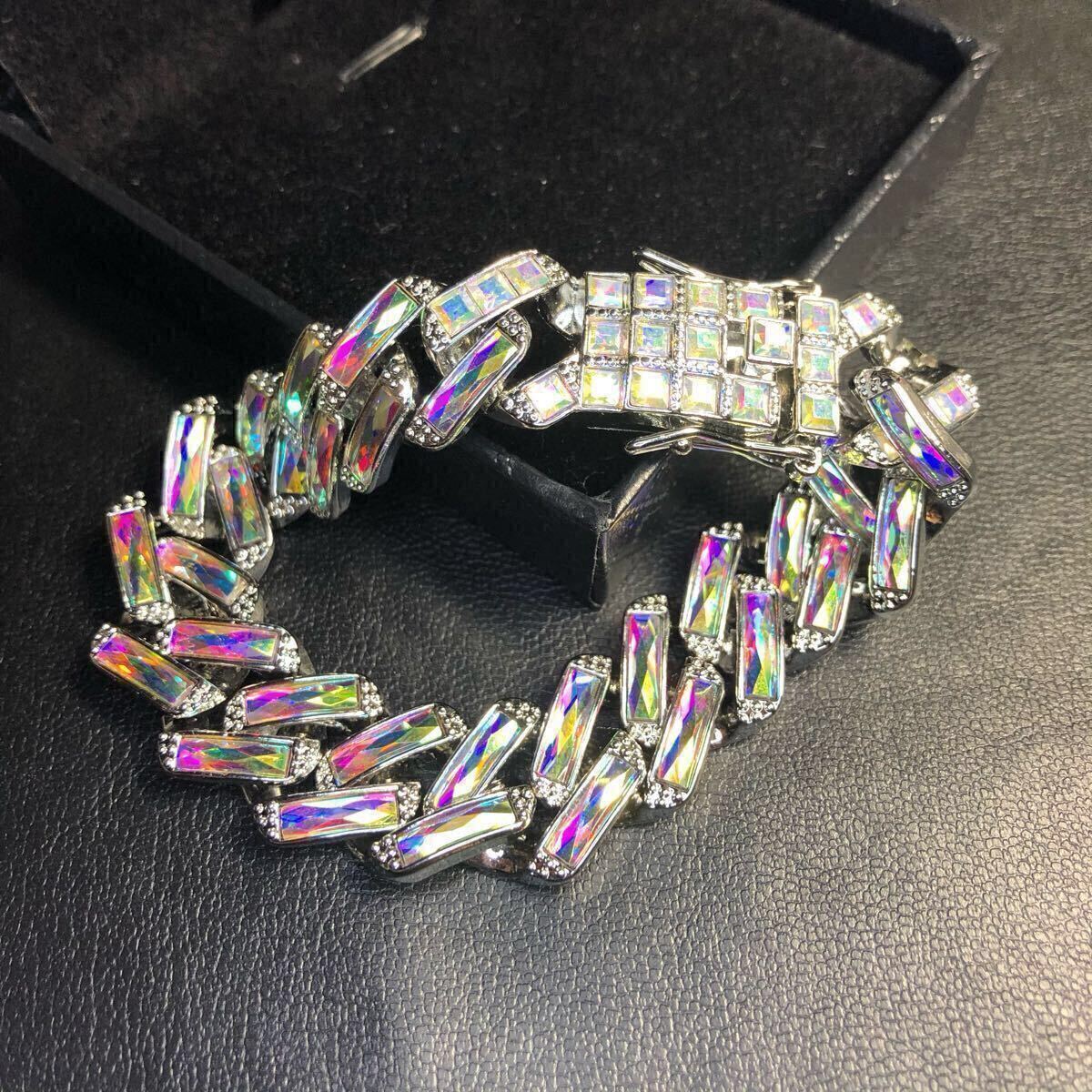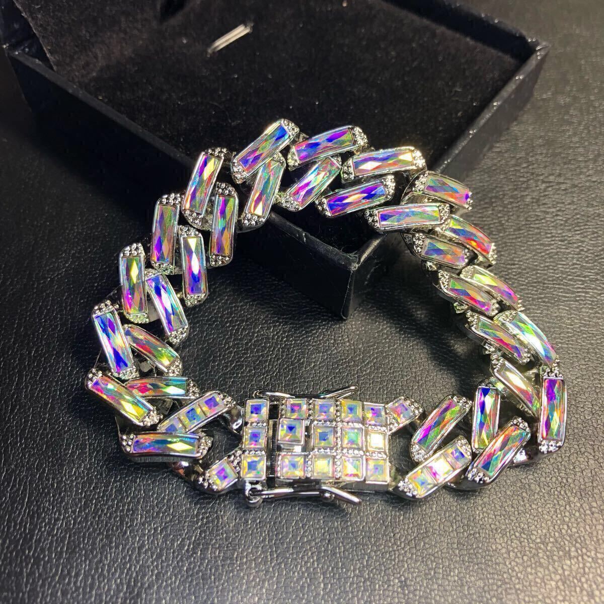 【新品】ブレスレット オーロラ シルバー カラフル レインボー 喜平 チェーン hiphop ブリンブリン ストリート