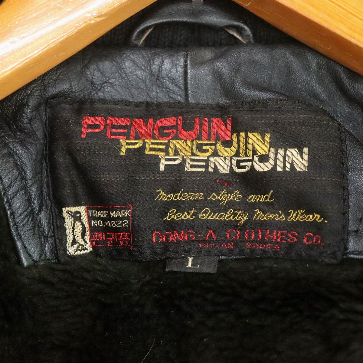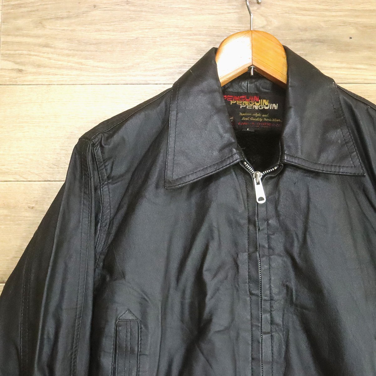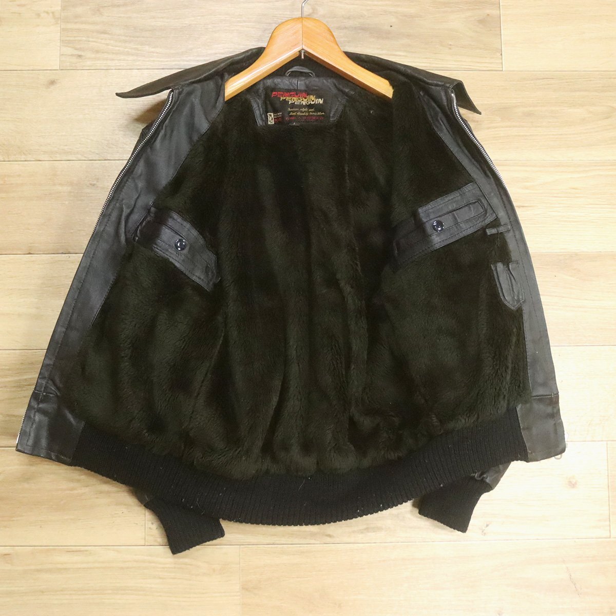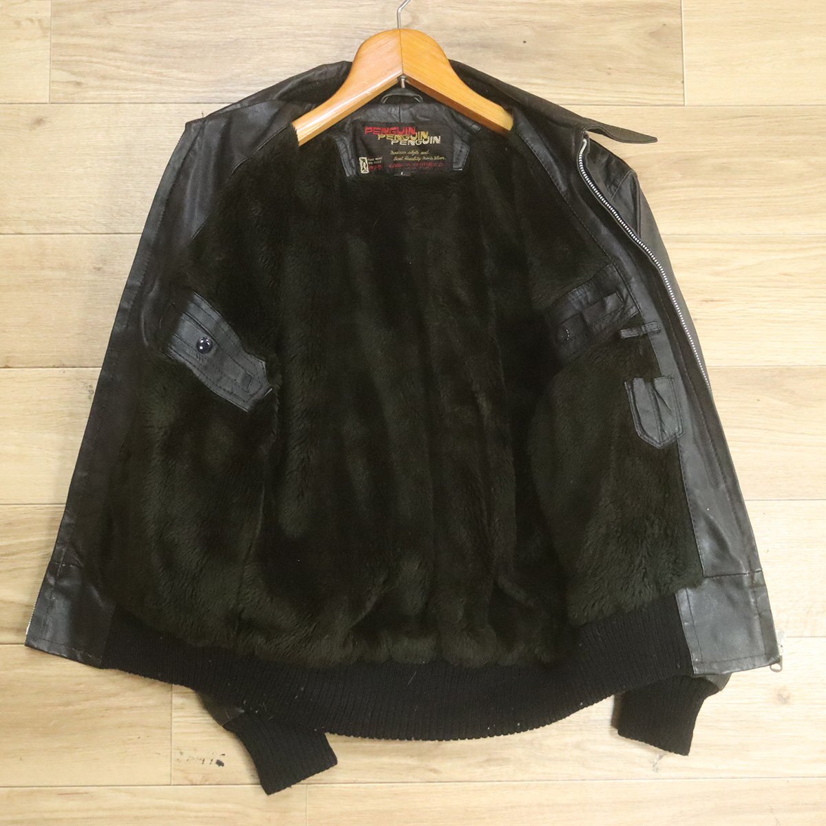 C9S/S8.26-3 PENGUIN レザージャケット 裏ボア スポーツジャケット 革ジャン 皮ジャン ブルゾン L ブラック ヴィンテージ