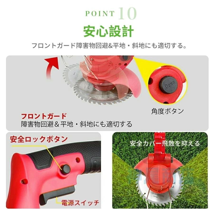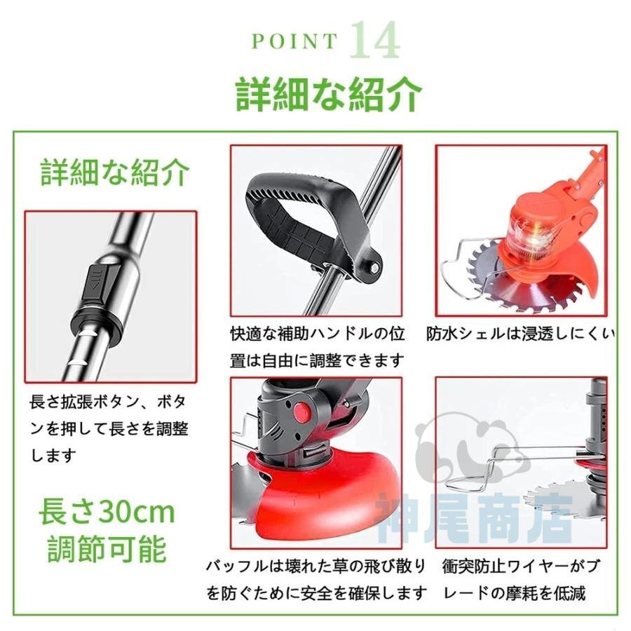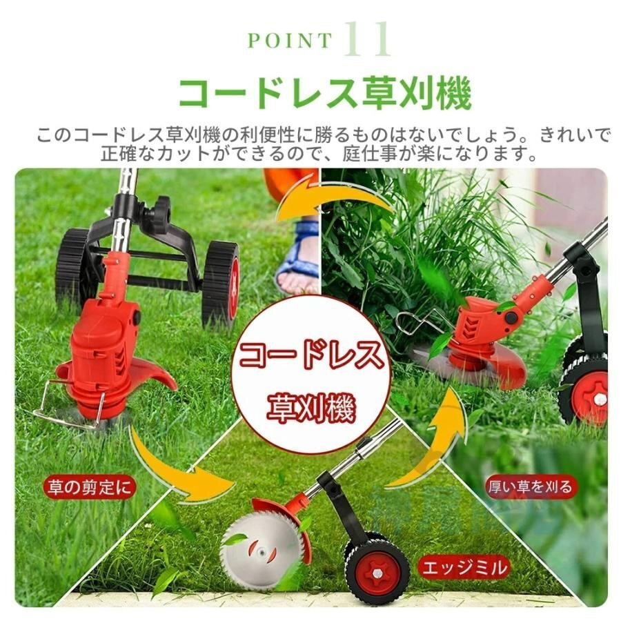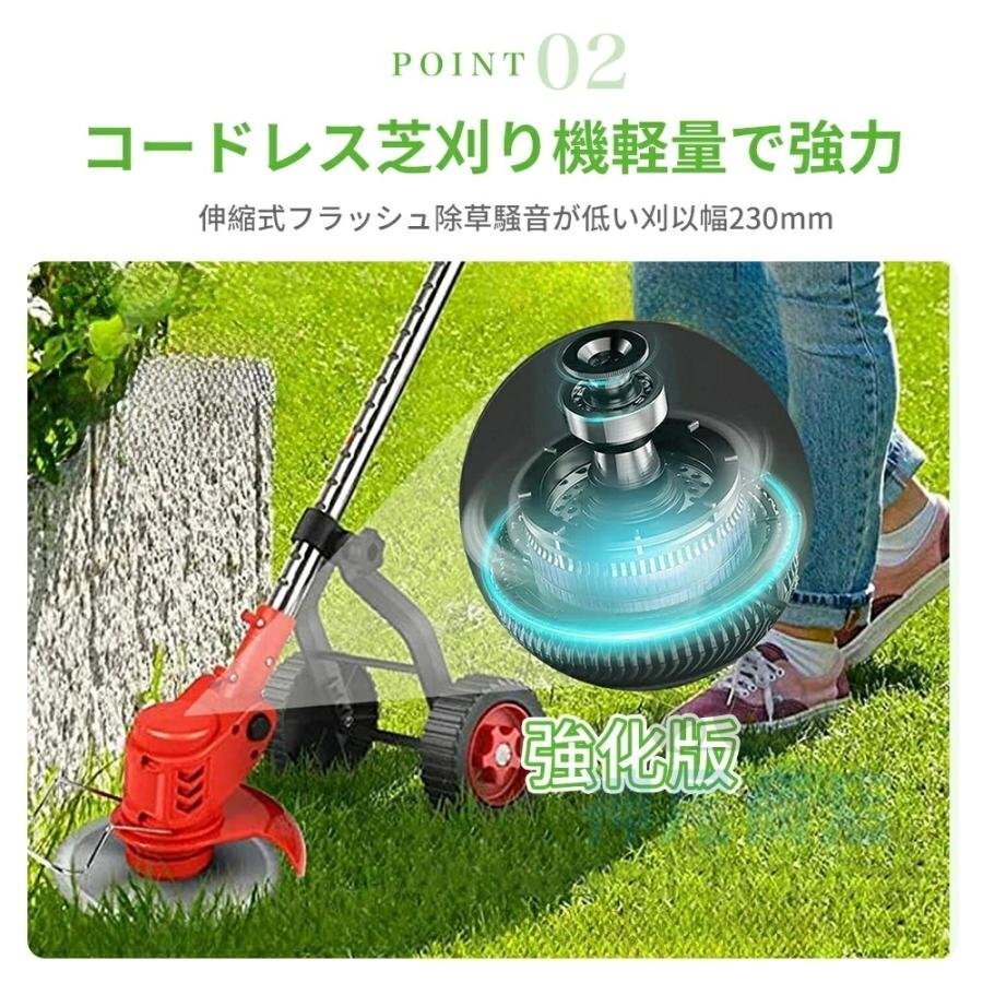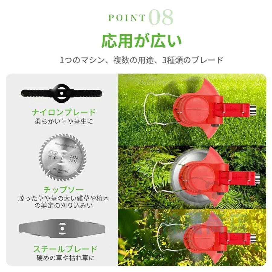 充電式 軽量 電動草刈機 コードレス 多機能 伸縮角度調整 DCモーター 芝刈り機 女性 安全 無線 グラストリマー 3種類替え刃付き zchw0141
