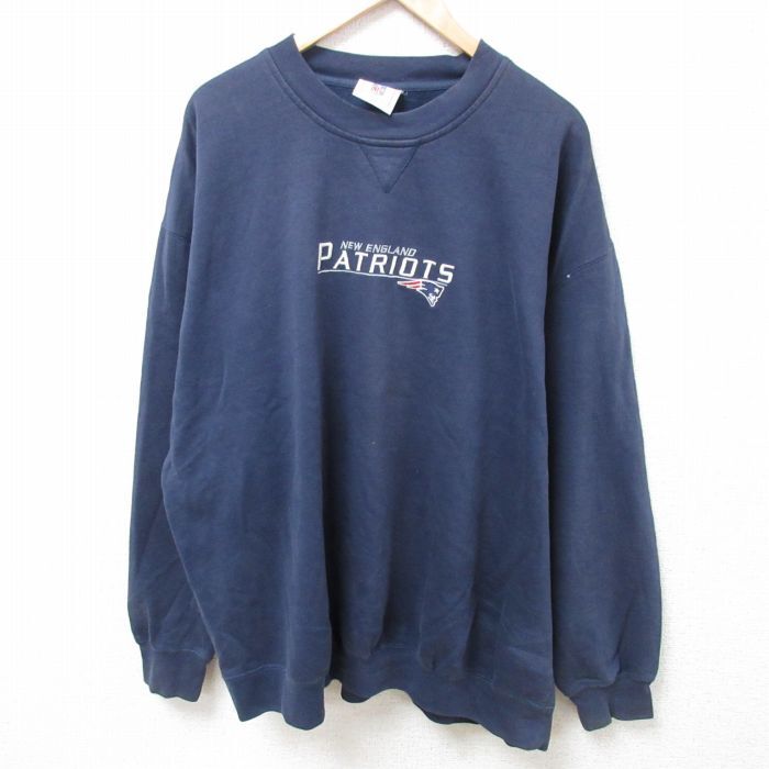 【商品名】 XL★古着 長袖 スウェット メンズ 00年代 00s NFL ニューイングランドペイトリオッツ 刺繍 大きいサイズ クルーネック 紺 アメフト スーパーボウル