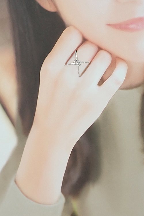 コメントグッチの、アイコニックなGGのロゴがデザインされた、クールなGGランニングリングです。クロスした細めのアームが、モード感のある印象的なお手元を演出します。裏側にもダイヤモンドが1粒セットされています。