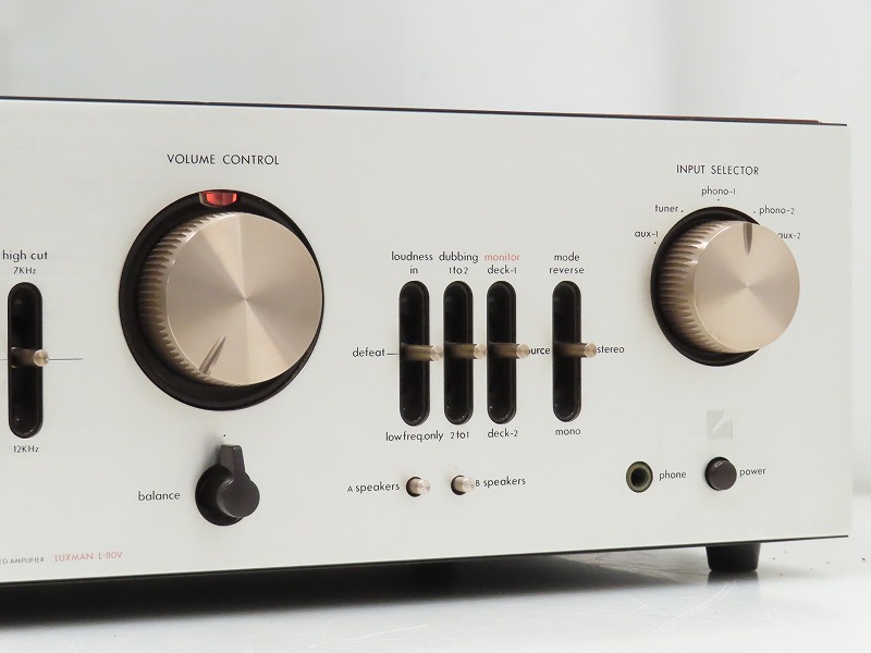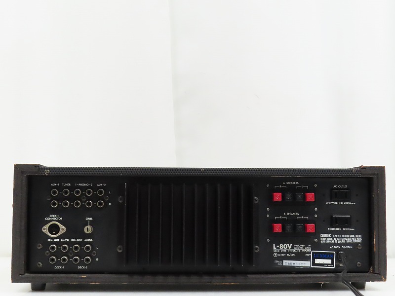 ■メーカー : LUXMAN ■型番 : L-80V ■外径寸法 : W450×H160×D300mm ■重量 : 10.1kg 【商品の状態 当店での確認内容】 音声出力は確認出来ておりますが、接触不良がございます。 ※上記により【難あり商品】としての出品となります。 「商品の状態」に関しましては当方主観の目安となります。外観などは中古品で個人差もありますので詳細は画像にてご判断ください。 画像にて不明な点はご質問下さい。 出品商品は画像のものですべてになります。画像に写っているもの以外は付属いたしません。 ※注意※ ヤフオクのシステム上、送料表記が送料未定となっておりますが、送料に関しては全て有償となりますので下記を参照下さい。 【送料 全国一律 2,080 円 沖縄、離島は別途お見積り】 ※送料がお得になるサービスです(下取りシステムのご案内です) ストア決済利用時にクレジットカードやPayPay残高/PayPayクレジットを利用の方は留意点がございますのでこちらを参照上ご利用ください。 当ストアでは商品を安全にお届け出来るよう提携運送会社と協議の上、発泡緩衝材や強度段ボールの使用等 運送会社が指定する梱包方法や資材を採用しております。 より安全にお届け出来るよう商品仕様により梱包サイズが大きくなる場合や個口数が増える事がございます。 【当ストアオークションルールを入札前に必ずご確認ください。】 【落札後の取引手順】 ・落札後は取引ナビにて、必要事項をご入力後、送信ください。 取引終了後48時間(土、日は除く)以内に入力をお願い致します。 ※ご連絡が頂けない場合は落札者様都合でのキャンセルとさせていただきます。 ・落札代金(商品代金+消費税+送料)の入金をお願い致します。 ※大型商品の場合は送料確定後の決済となる為取引ナビを入力頂き、当ストアより送料のご案内が来るまでお待ちください。(土曜、日曜、祝日の場合は翌営業日より順次ご案内いたします) ・お支払い方法はクレジットカード/PayPay残高/PayPayクレジット/PayPay銀行/ゆうちょ銀行のみです。 ※商品代金引換(代引き)のお取り扱いはしておりません。 ※領収証の発行が必要な方はご連絡ください。 ※銀行振込の際の振込手数料はご負担願います。 ・入金確認後に出荷手配を致します。 (原則入金確認後3営業日以内に発送いたしますが、大型や重量のある製品はお時間をいただく場合もございます。) ・発送は当店指定の運送会社の元払いのみでの発送となります。 ※他の運送会社、送料代引き等は致しかねます。 ※落札者様ご自身での運送会社の手配いただく事も可能ですが荷物事故の責任の所在の問題上、梱包は致しかねます。 ※店頭にお越し頂き手渡しも可能(福岡市早良区)です。ご希望の方はご落札後にご連絡下さい。 ・大型/重量物商品の送料につきましては商品の特性上、荷降ろし状況等により送料が大きく前後し運送業者に別途見積りが必要な為、早めのお問い合わせにてお見積り上、入札をお願い致します。 【初期不良の保証について】 ・商品到着後の初期動作不良、また配送中の事故による破損、不具合が有る場合は、商品発送後10日以内に当ストアまでご連絡ください。当ストアでは修理での対応を優先させて頂きますが、修理不可の場合は全額返金させて頂きます。 (商品代金+消費税+送料のお支払い頂いた金額となります) 【初期不良の保証の対象外について】 次の場合は保証の対象外となりますのご留意ください ・ジャンク商品、現状商品、難あり商品での出品商品。 ※難あり商品に関しましては動作確認時に一部動作不良が確認された商品になり、記載している動作確認以外にも、動作不良がある可能性もございます。こちらに関しましても保証対象外となりますことをご理解ください。 ・年代物のオーディオなどで、当店にてわからない範囲で部品が交換されている場合 ・楽器類の特殊機材(マイクロスコープ等)での確認までは行っておりません。気になる方は事前にご質問いただくか、入札をお控えください。 ※初期不良に関しましては【商品の状態】に記載のもの、またそれによって起因する動作不良は対象外です。 ※商品発送後10日を過ぎてのご連絡は対応が出来ませんので、商品が到着しましたらお早めに確認をお願い致します。 【メーカー保証の加入・継承】 ・未使用品、展示品やメーカー保証期間が残っている商品に関しまして、メーカー保証の加入、継承が必要な方は、落札後取引ナビ内にて当ストアにお知らせください。商品発送までにご連絡いただけない場合、メーカー保証の手続きを承れない場合があります。 【評価について】 ・評価不要の場合、必ず取引ナビの「要望欄」にてお知らせください。それ以外でご連絡をいただいた場合、対応できない可能性がございます。一度行った評価はシステム上取り消しが行えませんのでご了承ください。 【入札削除・キャンセルについて】 ・入札後はトラブル防止の為いかなる事情がおきましても入札を削除等は致しておりま