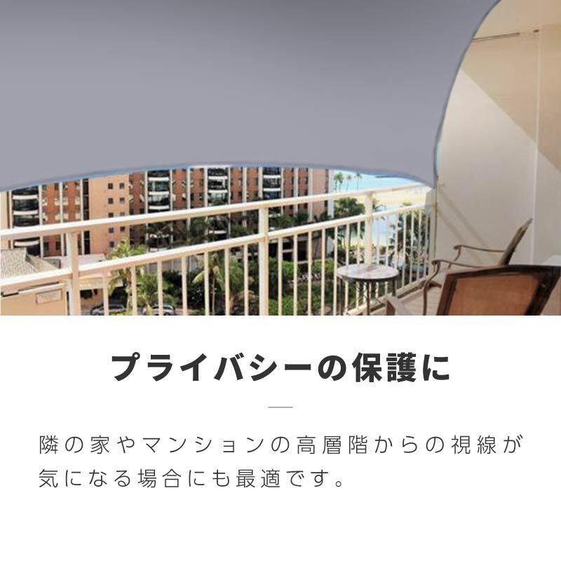 高密度ポリエチレン生地が太陽光を遮り、室内温度の上昇や紫外線による日焼けを防止。