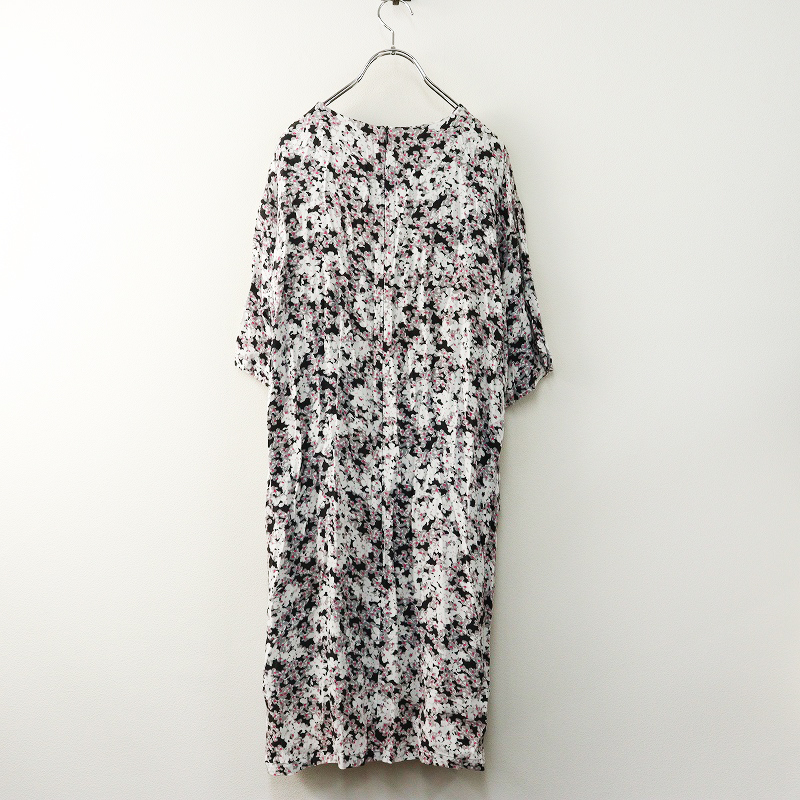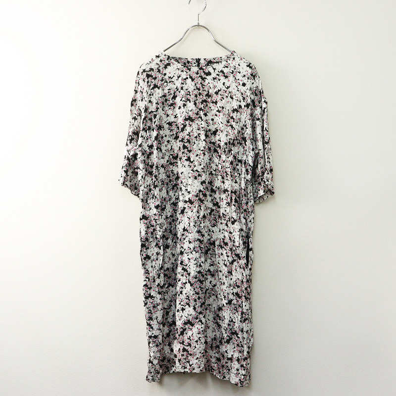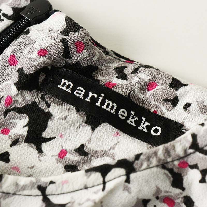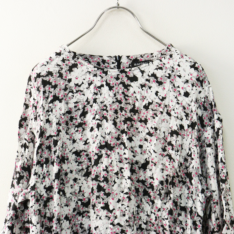 マリメッコ marimekko Henrikka 五分袖ワンピース 38 ブラック×ホワイト┃ドレス チュニック 花柄 フラワー【2400014739732】