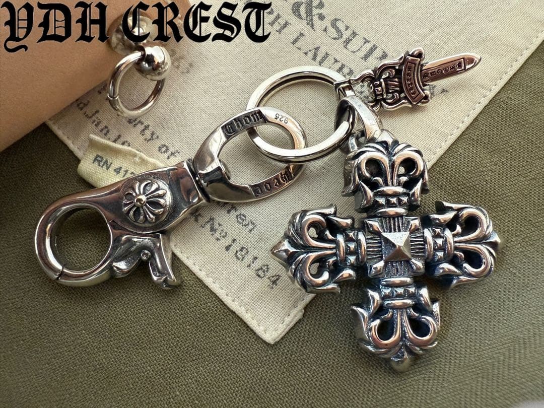★CKRGKI シルバーキーチェーン チャクラ型クロスキーホルダー 刻印有り