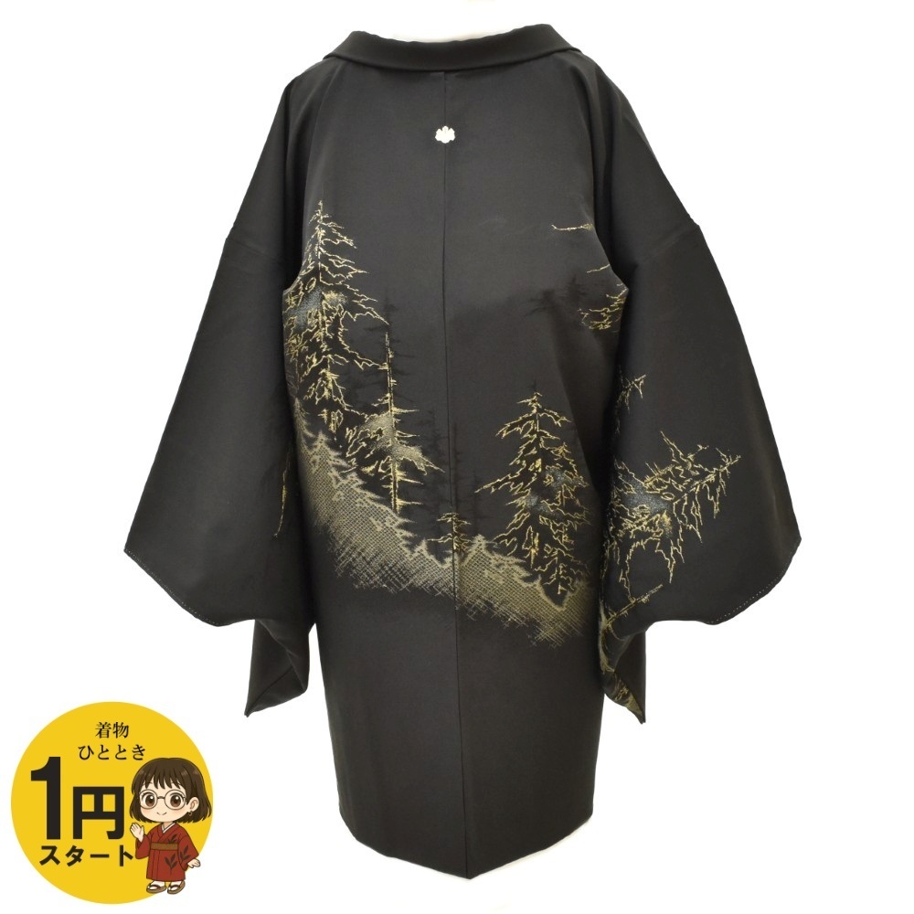 【商品説明】黒色に風景文様が施されたお洒落な長羽織です。 羽織紐付きです 【シミ汚れ等の状態】 表裏共に多少のシミ汚れがあります。 ★サイズについて サイズに関しましては一品ずつ手で測っており、お着物や帯の性質上生地の伸縮性もございますので、 若干の誤差がある場合が多々ございます。 2cm未満の場合は、誤差となりますので大変申し訳ございませんが返品は承っておりません。予め御了承下さい。 |