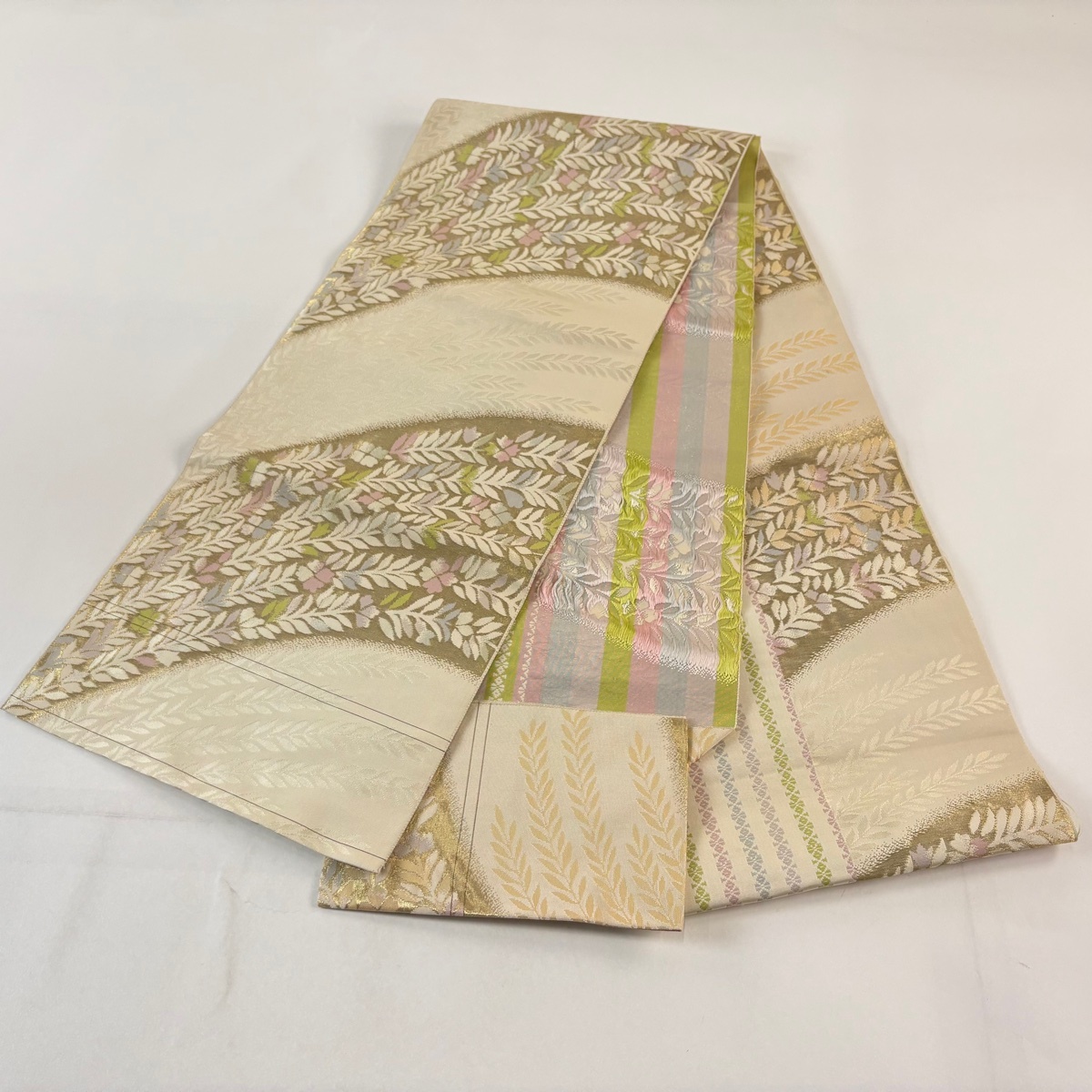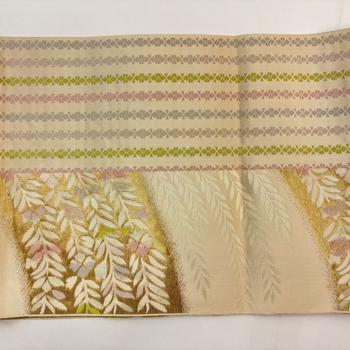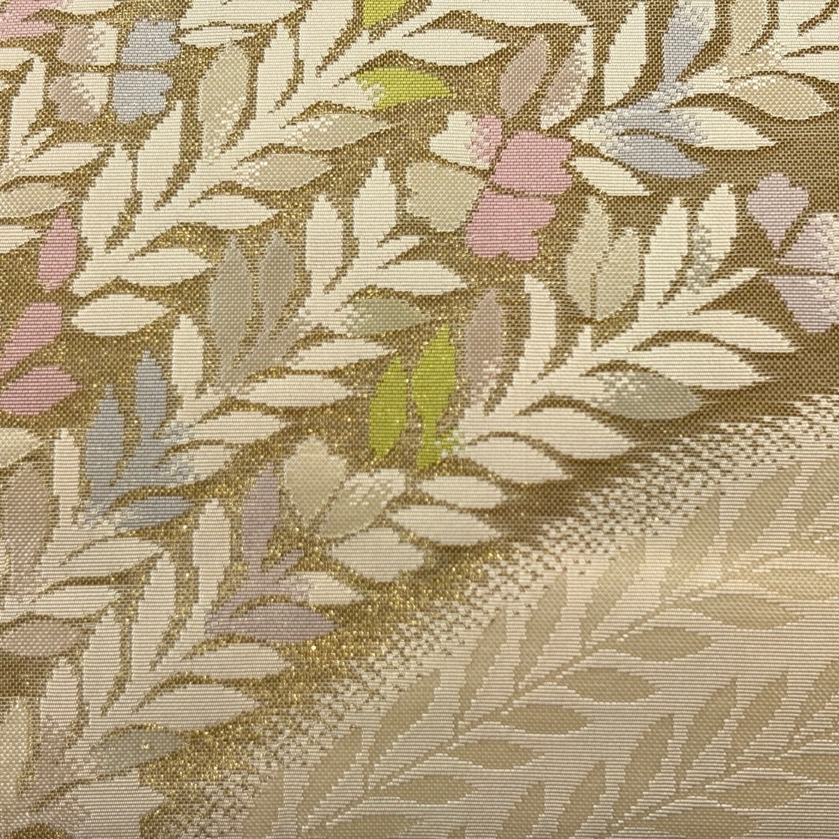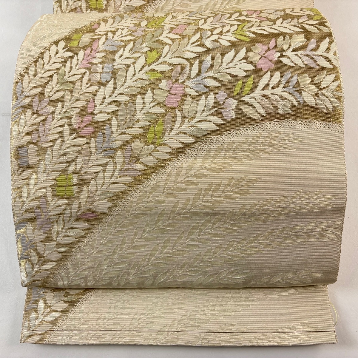 | 名古屋帯 優品 八寸名古屋帯 松葉仕立て 関西仕立て 草花 葉柄 金糸 ベージュ 化繊 【中古】 |