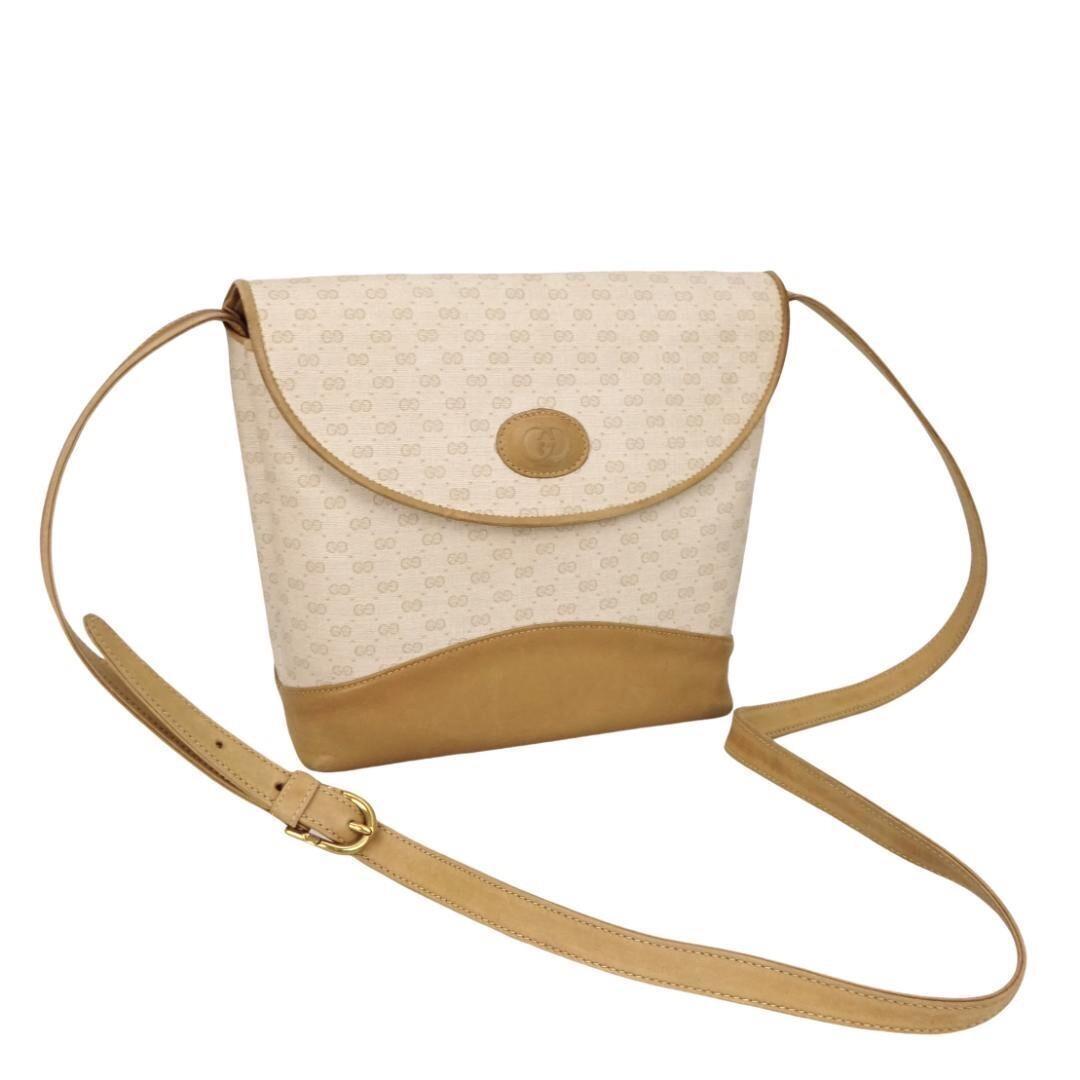 本物 ■グッチ■GG ベージュ PVC キャンバス キャメル レザー 斜めがけショルダーバッグ
