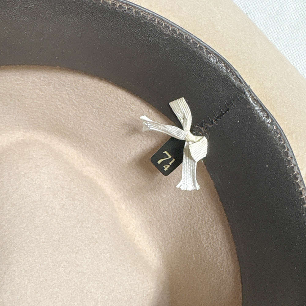 定番といっても過言では無いライトベージュカラーの一品で、1段巻きの細幅リボン、7.4CMの超ワイドブリムという存在感が素晴らしい人気ディテールが光ります。