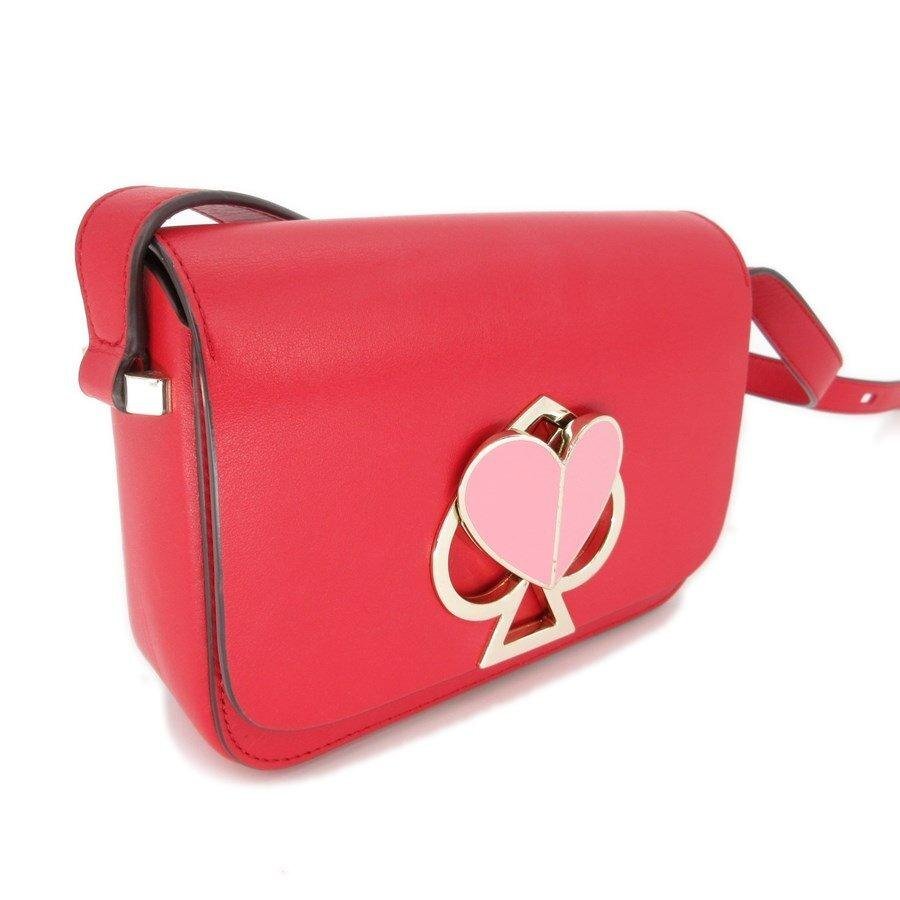 ・送料無料 美品 ケイトスペード kate spade ショルダーバッグ ポシェット 鞄 斜め掛け ターンロック ツイストロック ニコラ Nicola ハート スペード フラップバッグ クロスボディ PXRUA245 RN0102760 CA57710 レザー 本革 赤 レッド系 レディース