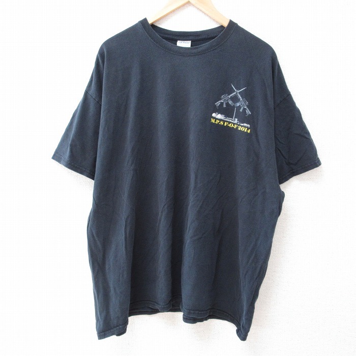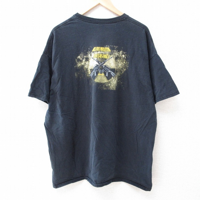 【商品名】 XL★古着 半袖 Tシャツ メンズ マシンガン 大きいサイズ コットン クルーネック 黒