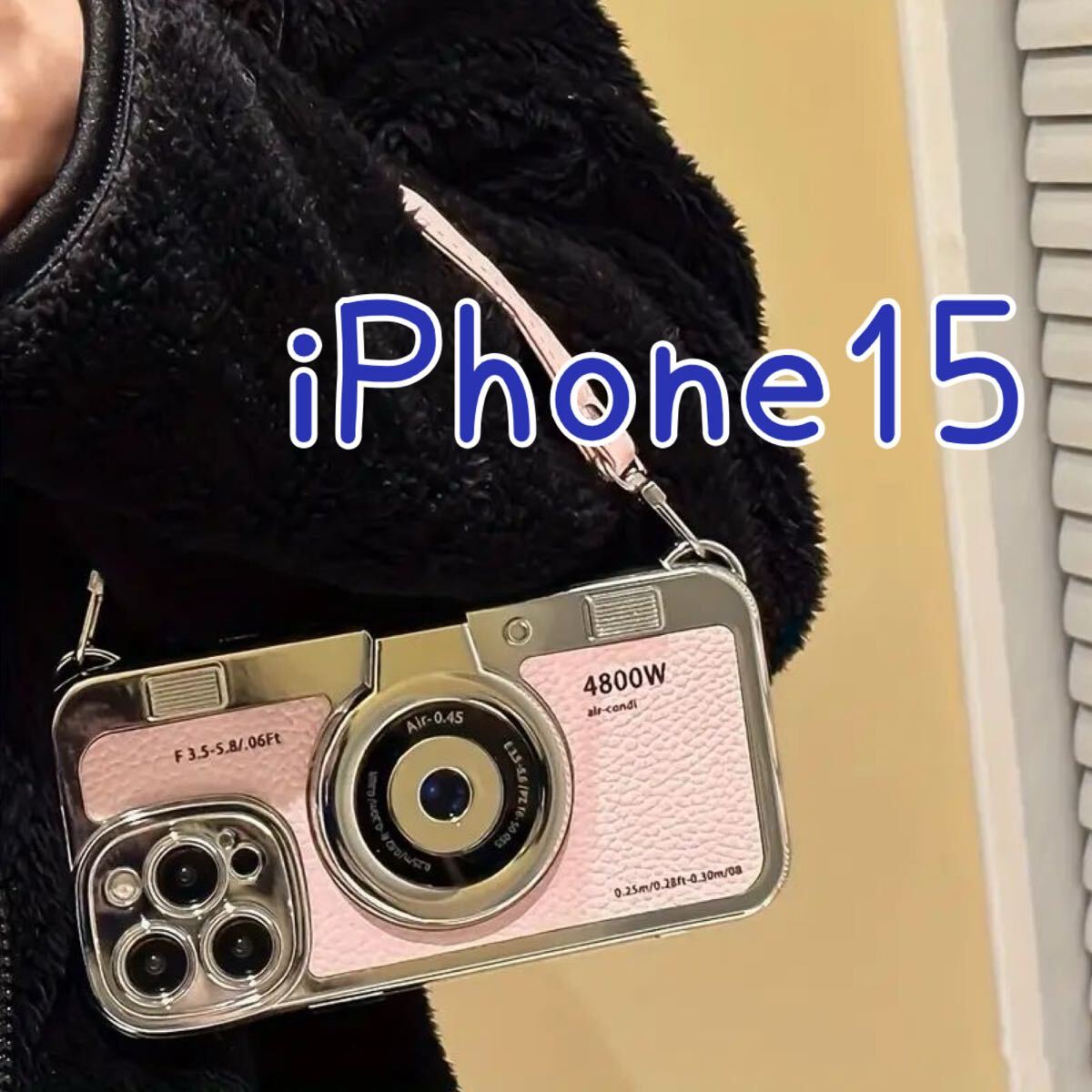 今流行りのレトロカメ風デザインのアイフォン15 スマホケース