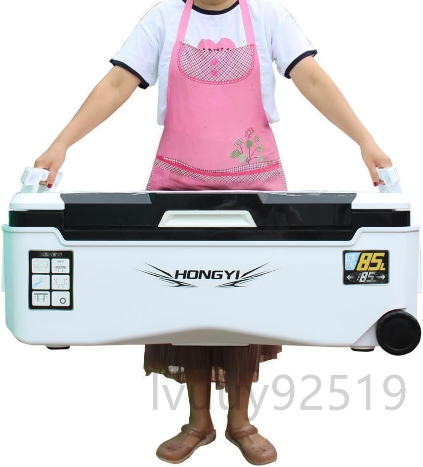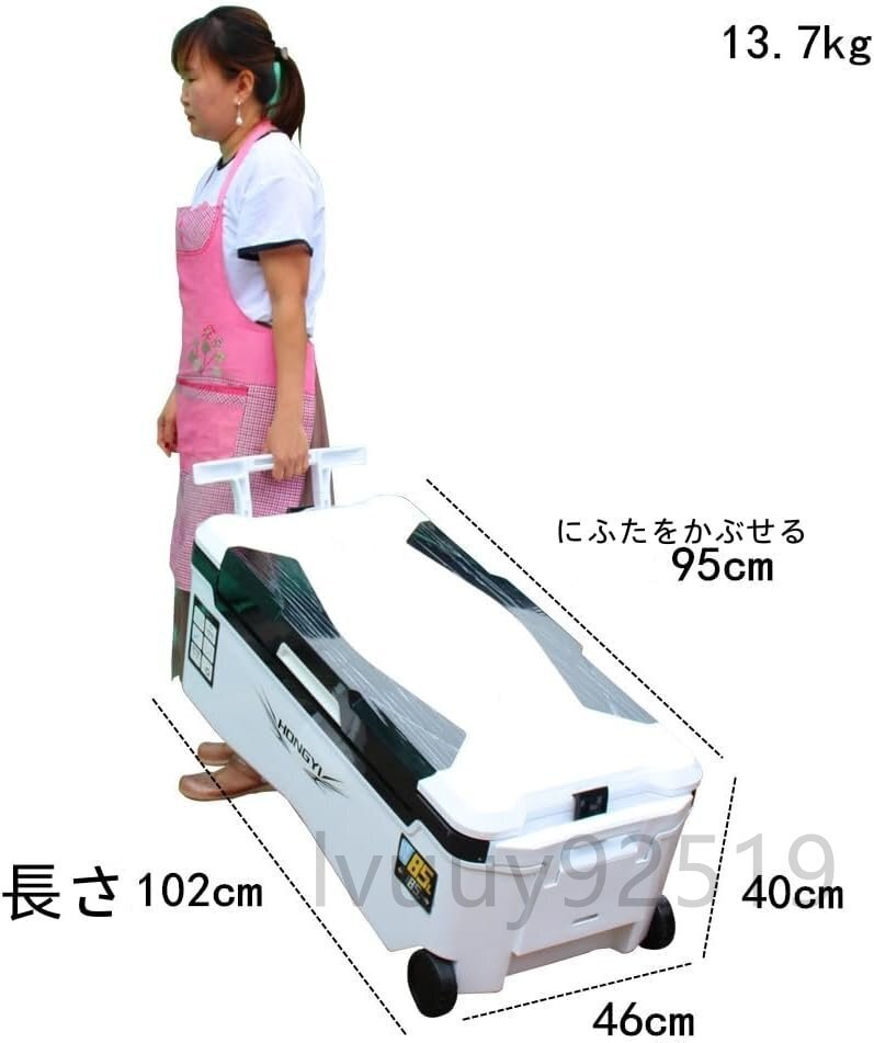 釣り用クーラーボックス 容量85L 座れる頑丈ボディ 保冷 ハンドル/釣りエサ箱/肩ベルト/水栓付き 背もたれなし 防水 高さ調整