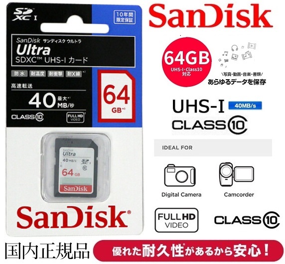 64GB SanDisk SDXCカード 64GB サンディスク Ultra SDメモリカード UHS-I Class10 40MB/s SDSDUN-064G-J01 国内正規品 フルHD対応