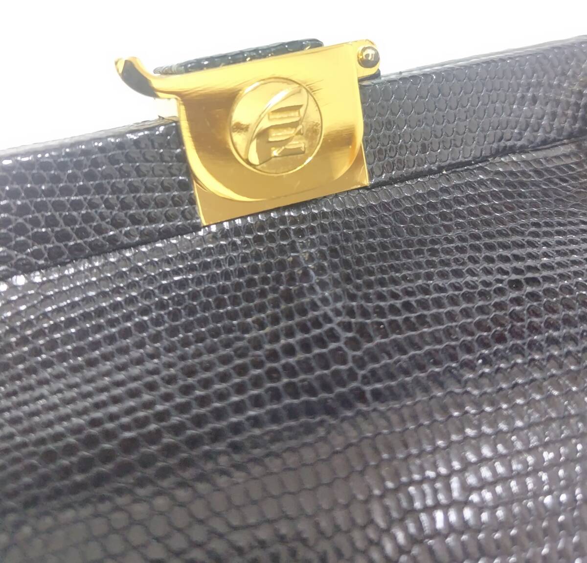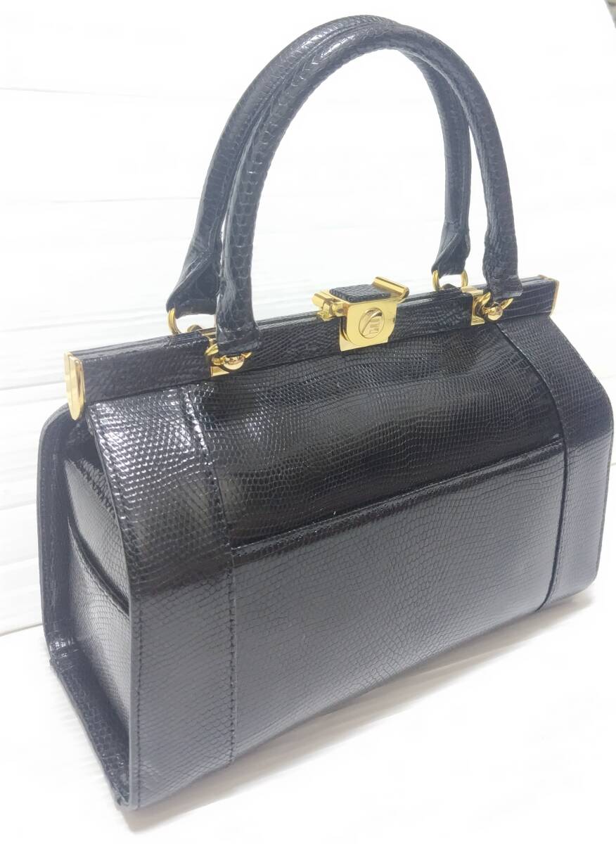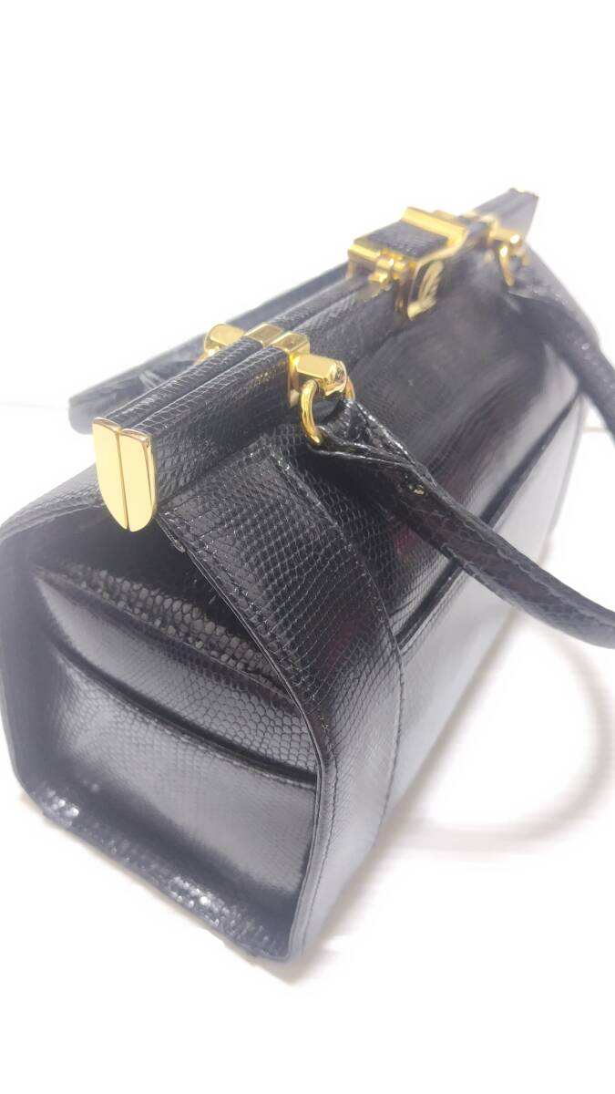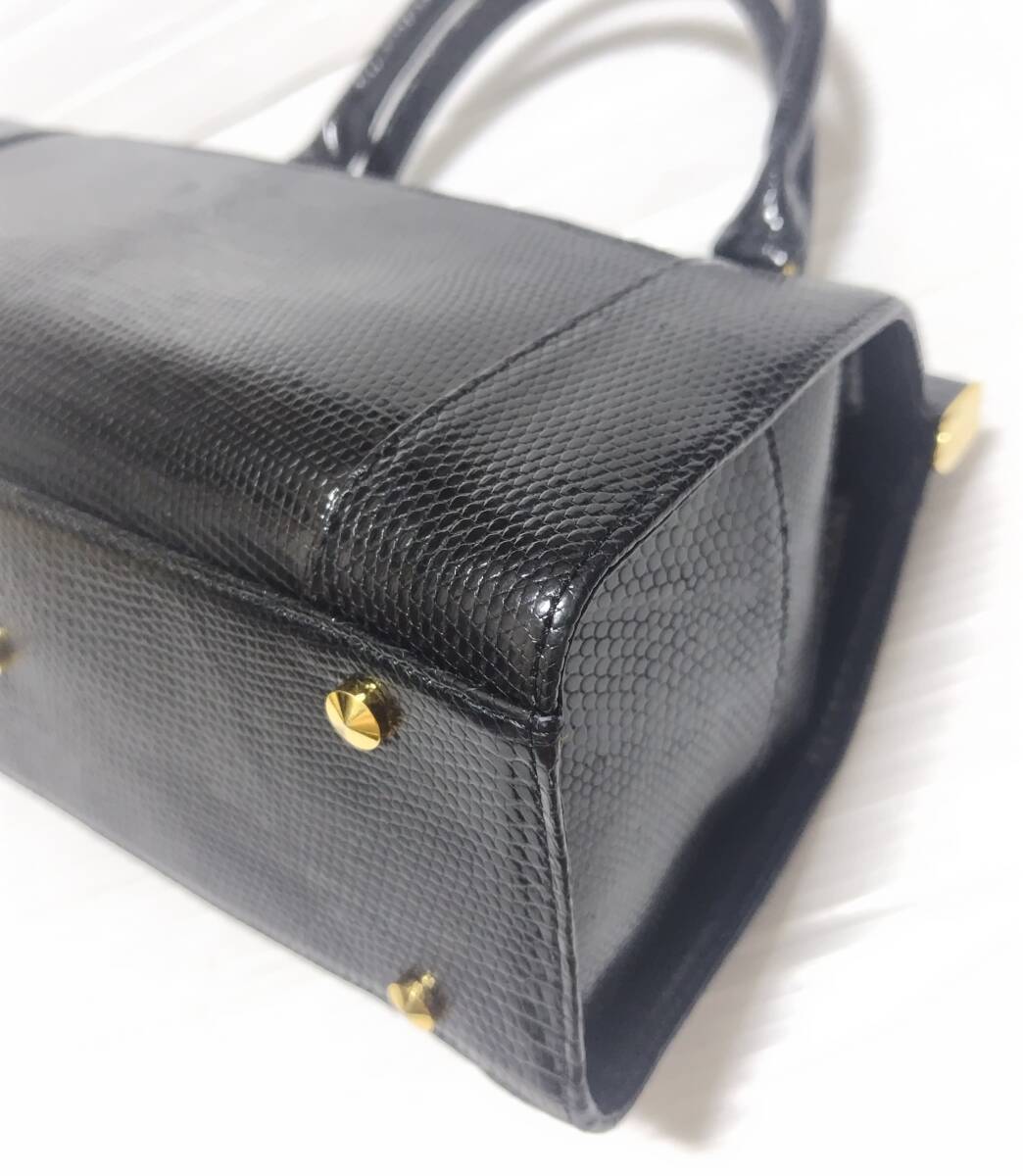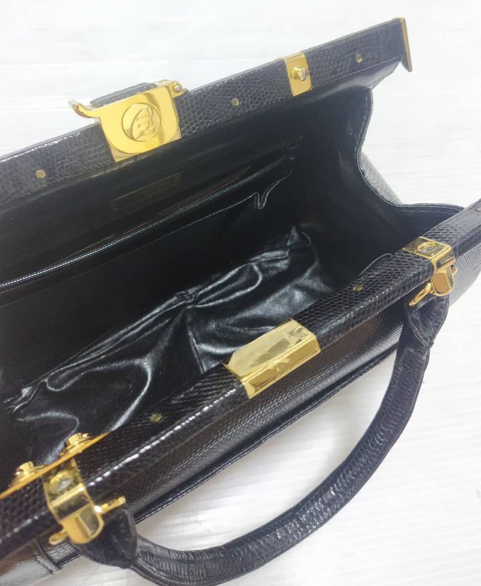 EAGLE イーグル JRA とかげ トカゲ革 蜥蜴 リザードレザー ドクターバッグ ハンドバッグ フォーマルバッグ ゴールド金具 レディース 黒
