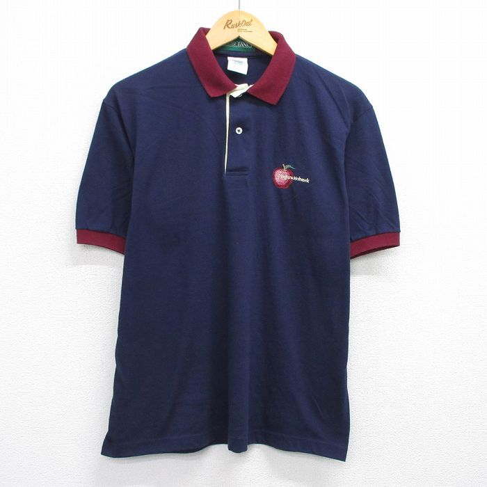 【商品名】 L★古着 半袖 ポロ シャツ メンズ 90年代 90s リンゴ USA製 紺他