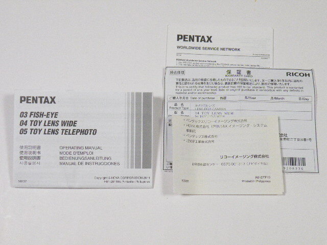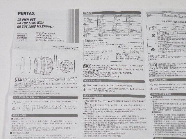 ◎ PENTAX 03 FISH-EYE / 04 TOY LENS WIDE / 05 TOY LENS TELEPHOTO ペンタックス Qマウント用 交換レンズ 使用説明書