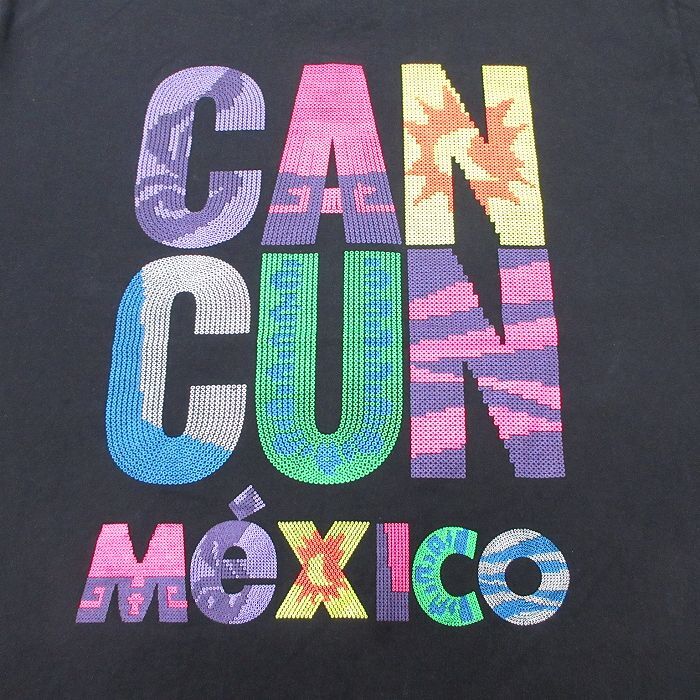 【商品名】 L★古着 半袖 Tシャツ メンズ カンクン クルーネック 黒