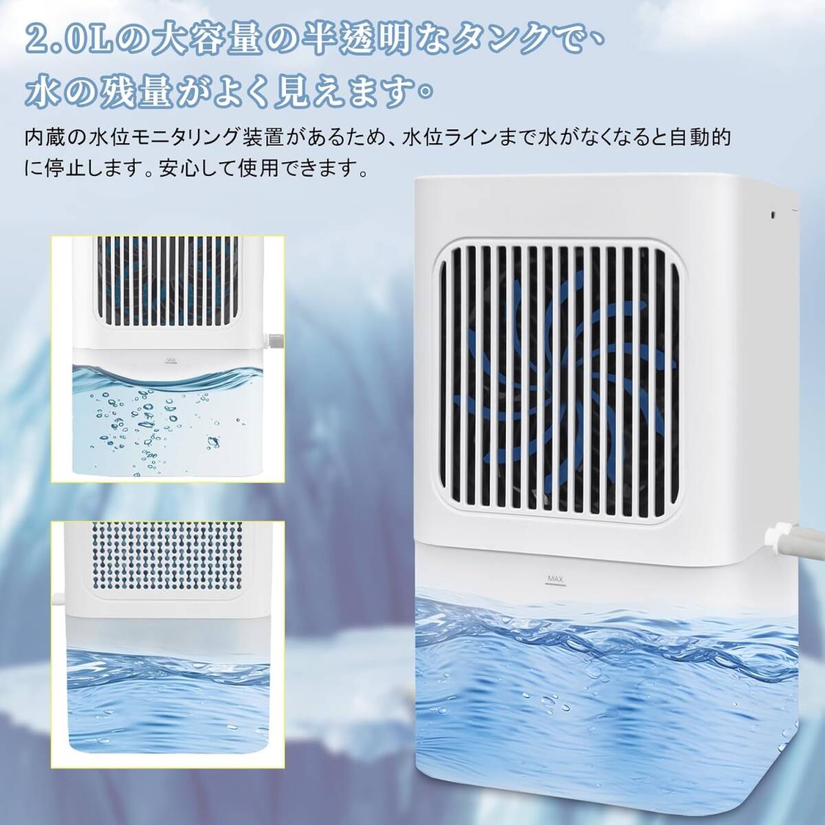 ◆2.0Lの透明タンクは、一度の給水で最大10時間冷却が持続し、就寝中の補給は不要です。