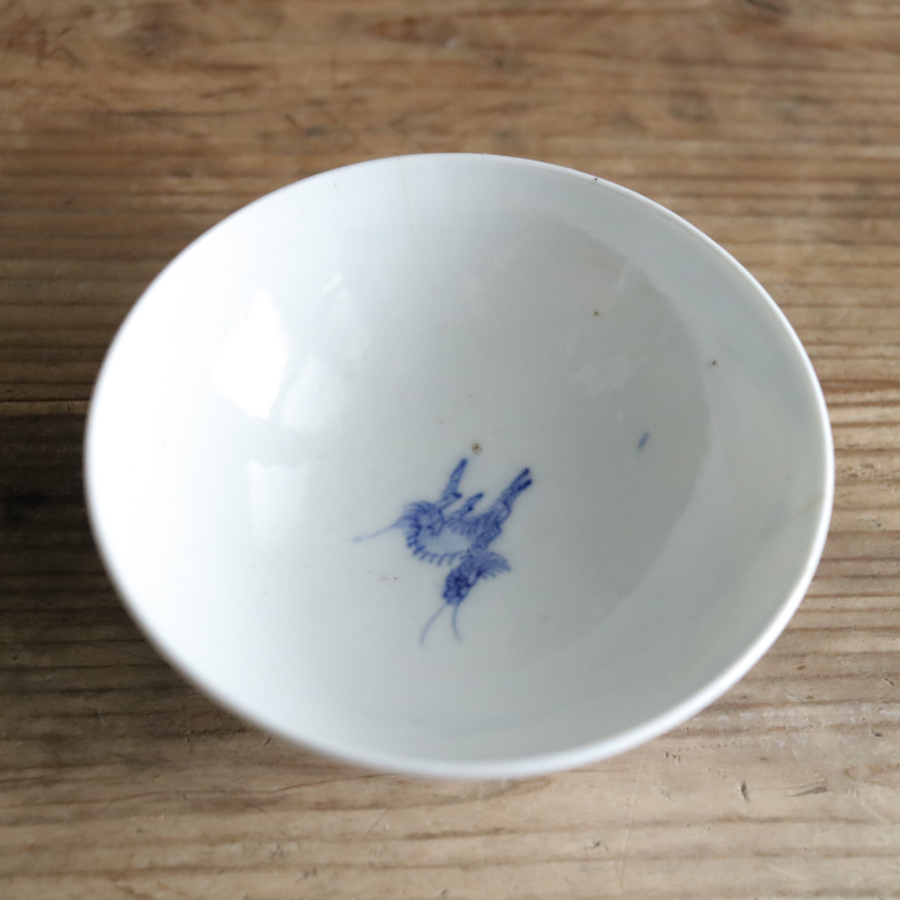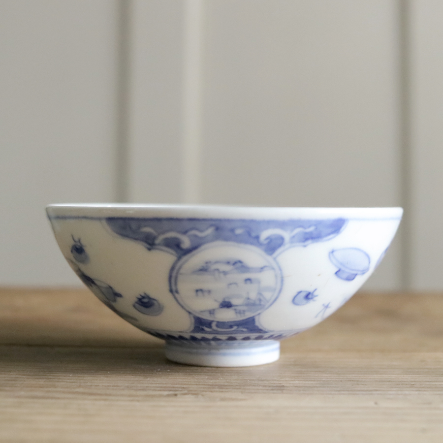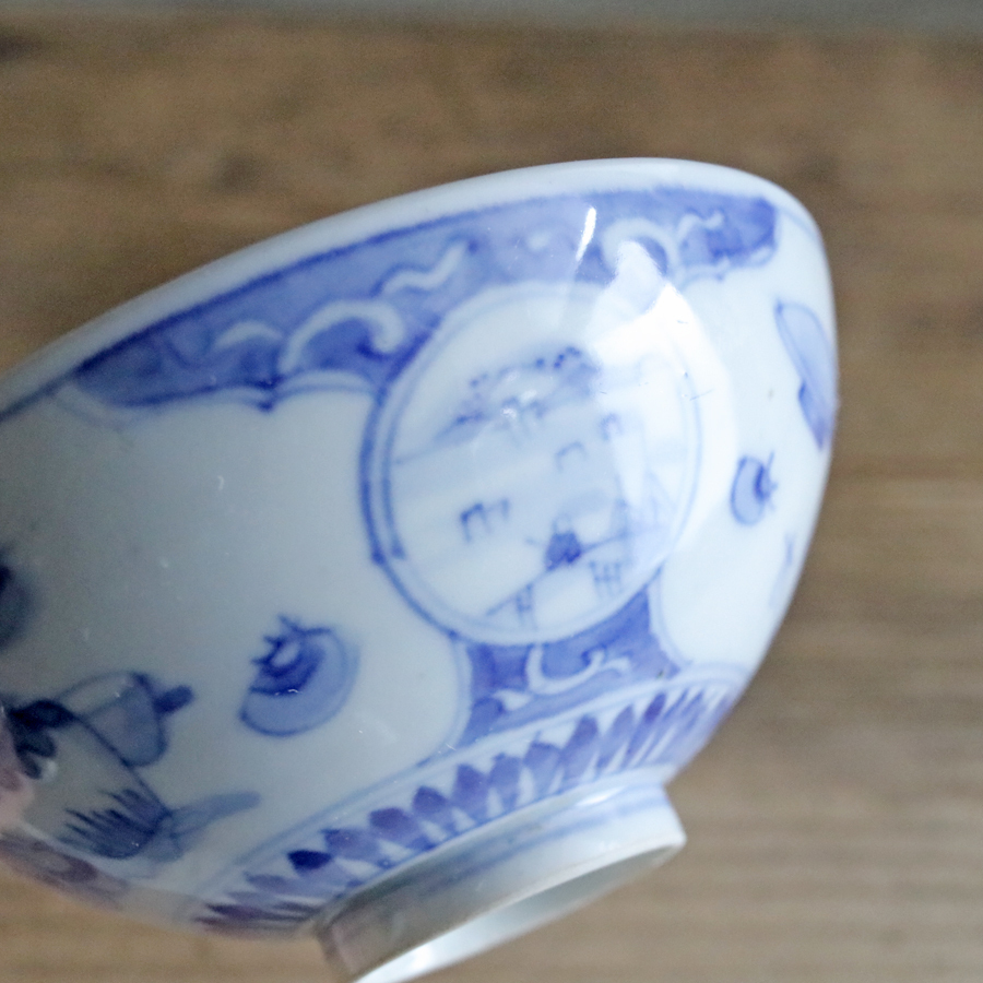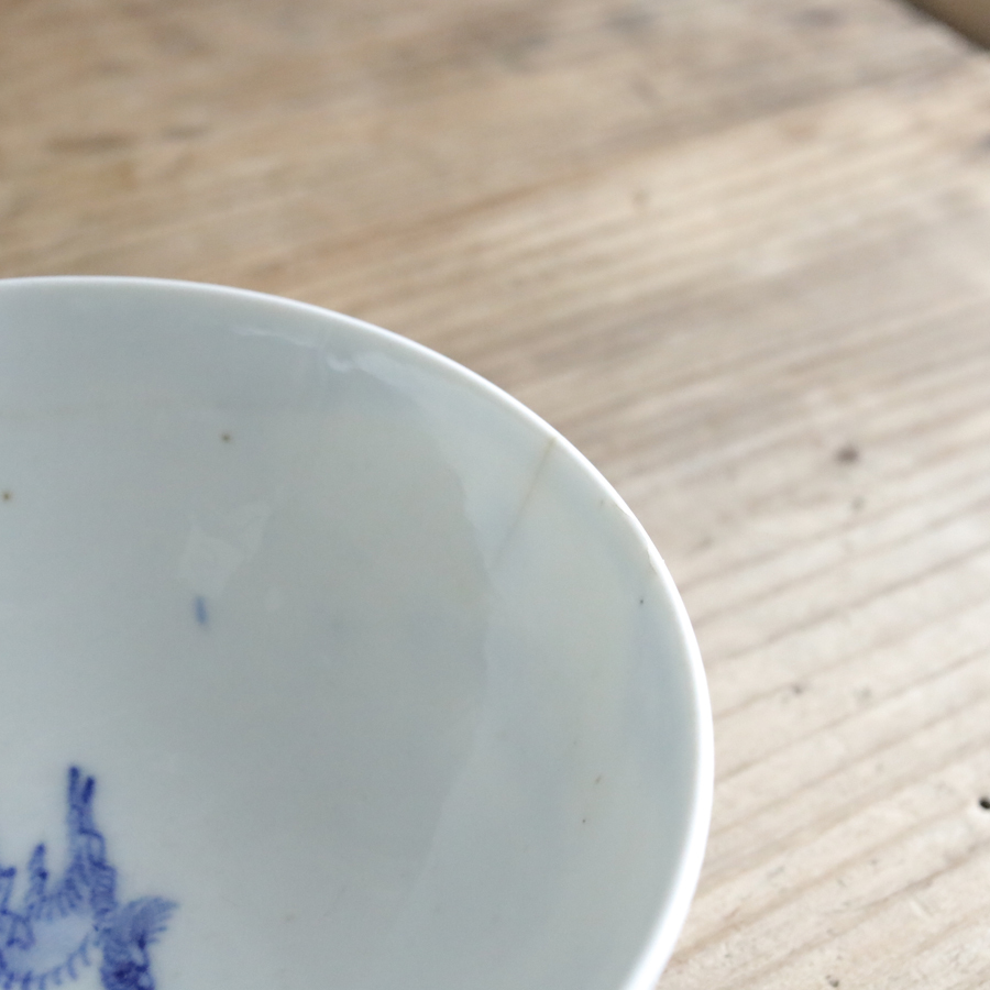 江戸 明治 時代 古伊万里 手描き 染付 茶碗 山水柄 麒麟 中国 風景柄 磁器 印判 和食器 椀 骨董 レトロ アンティーク 民芸 2