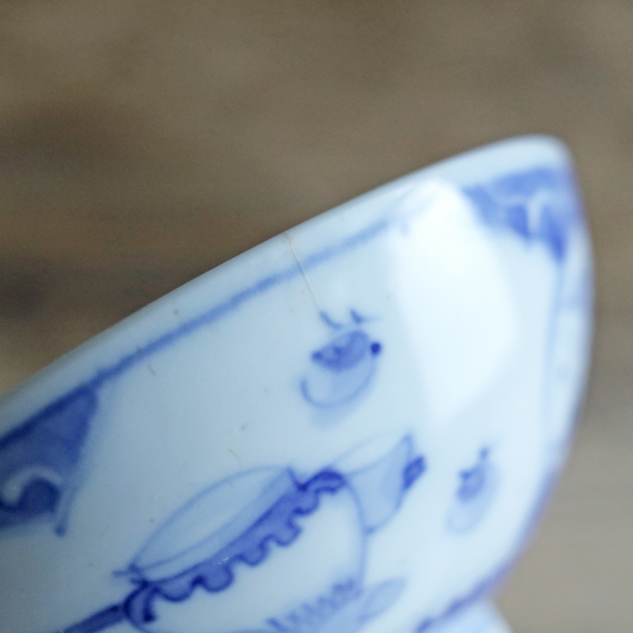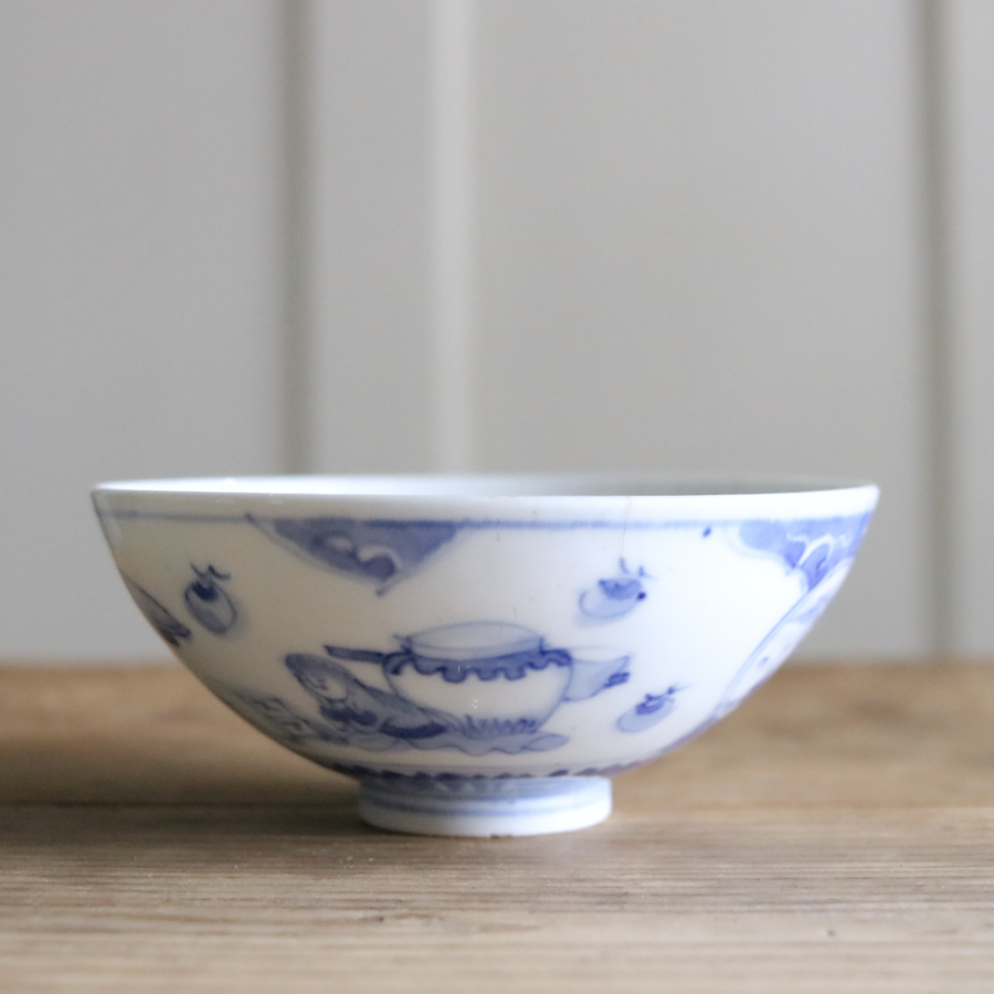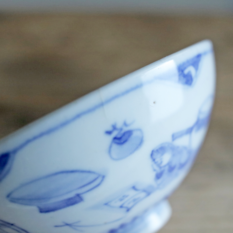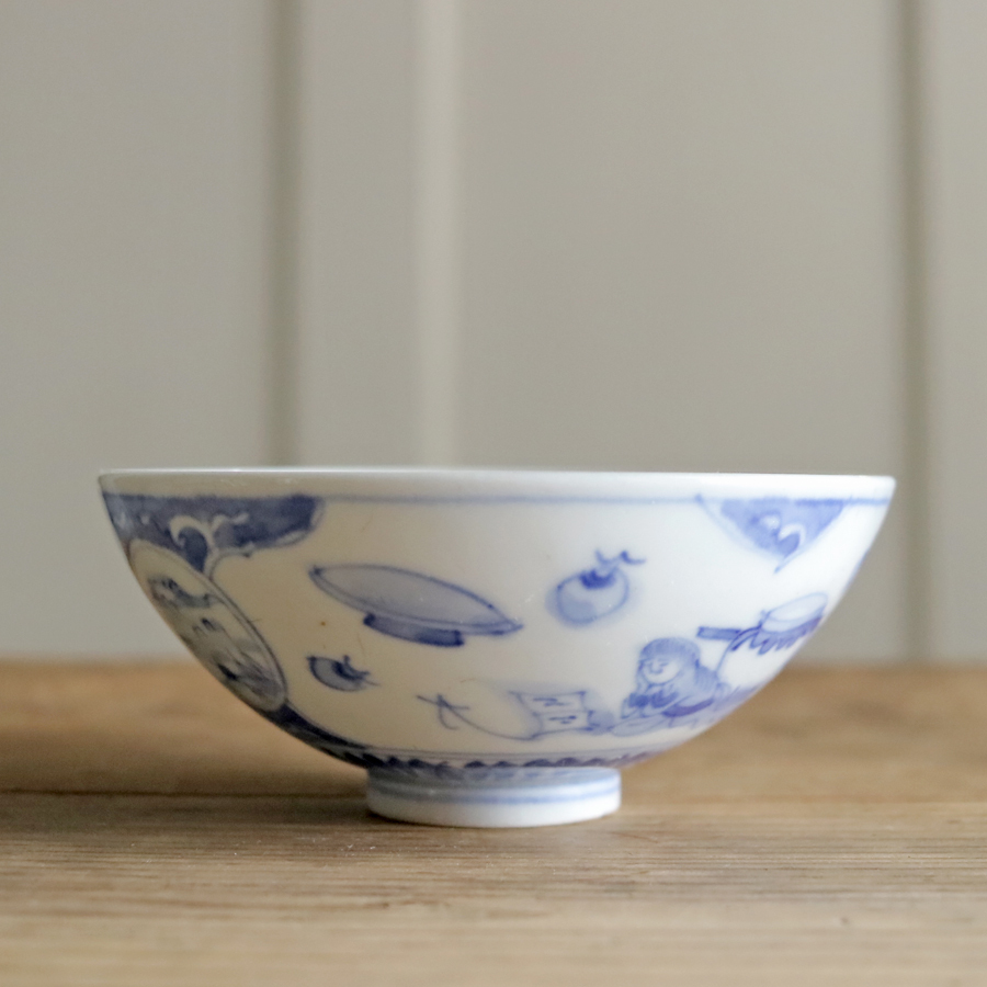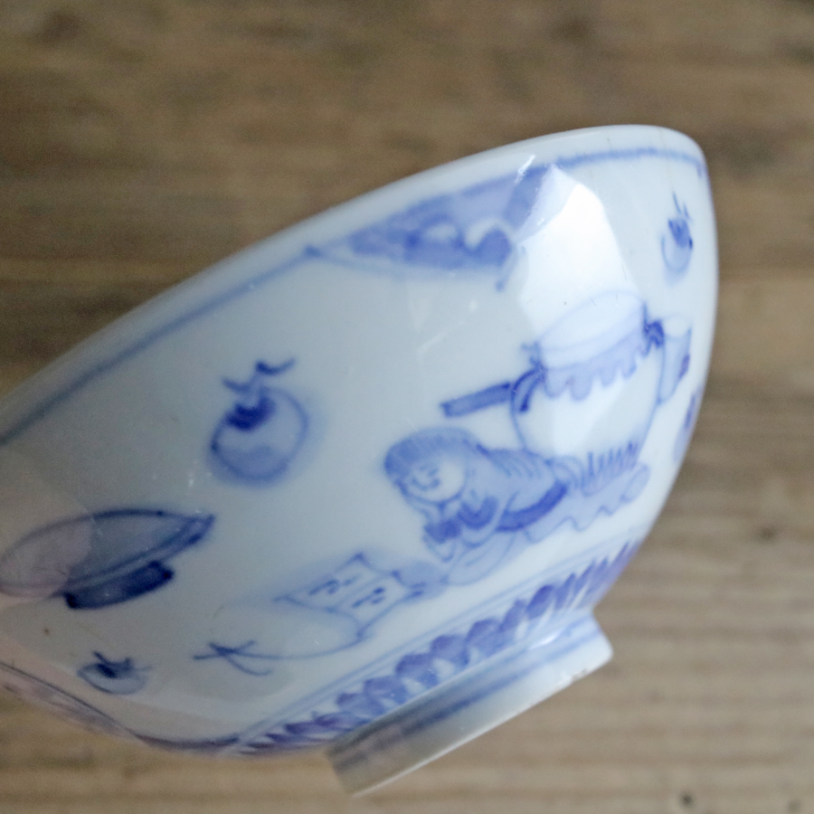 江戸 明治 時代 古伊万里 手描き 染付 茶碗 山水柄 麒麟 中国 風景柄 磁器 印判 和食器 椀 骨董 レトロ アンティーク 民芸 2