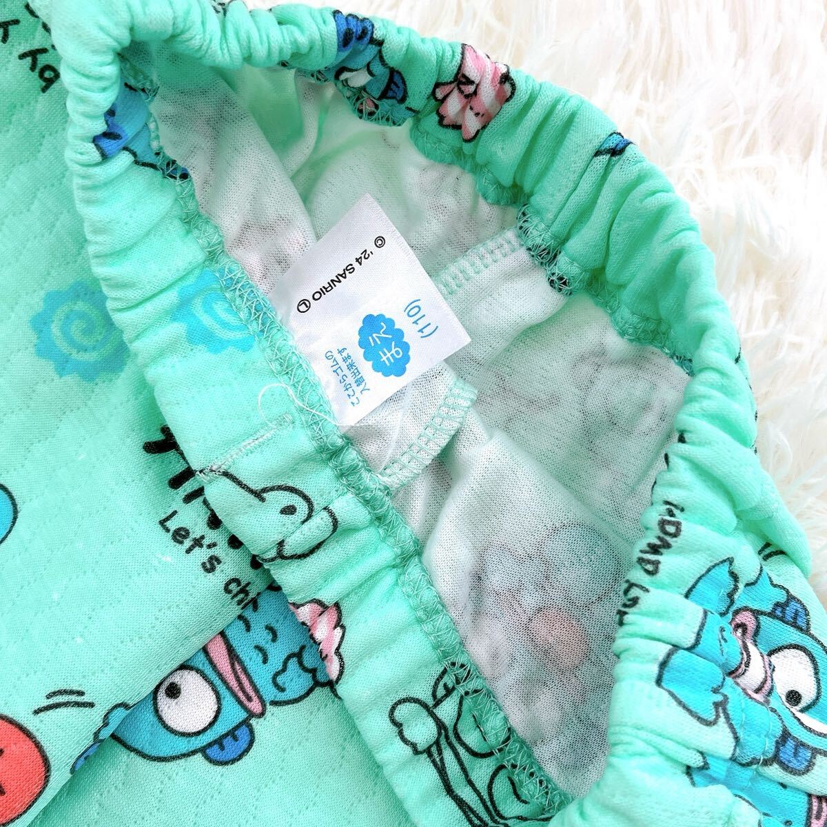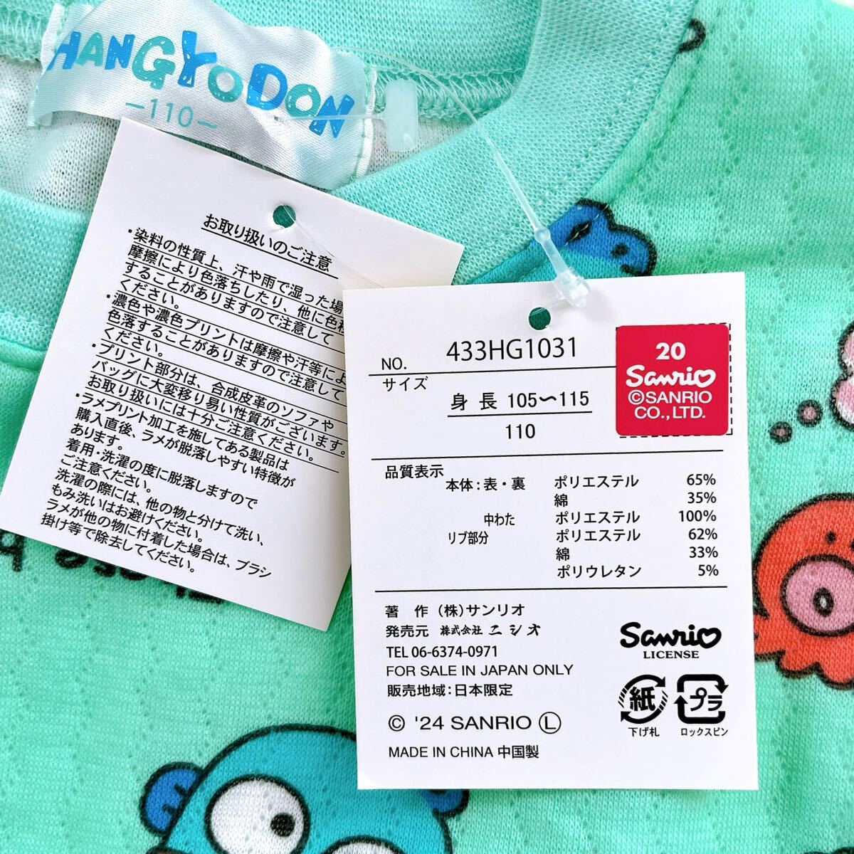 パジャマ/上下セット/セット/セットアップ/女の子/女児/男の子/男児/子供/こども/子ども/キッズ/サンリオ/Sanrio/ハンギョドン/水色/黄緑/ミントグリーン/キルティング/キルト/キルトパジャマ/キルティングパジャマ/長袖/長ズボン/パンツ/ズボン/長袖パジャマ/薄手/110cm/新品/未使用/美品/タグ/タグ付き/タグ付