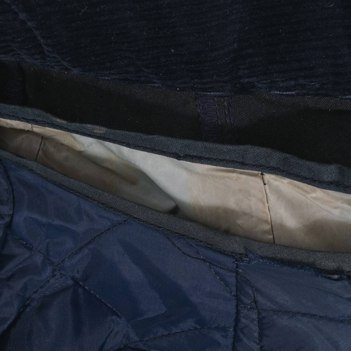 肩と袖口にはレザーによる補強がされていますが、生地と同じブラック染めで目立ちません。ライナーはおそらくナイロン製で、これも規格の関係で現在は使われない素材ですが、滑りが良く非常に動きやすくなっています。