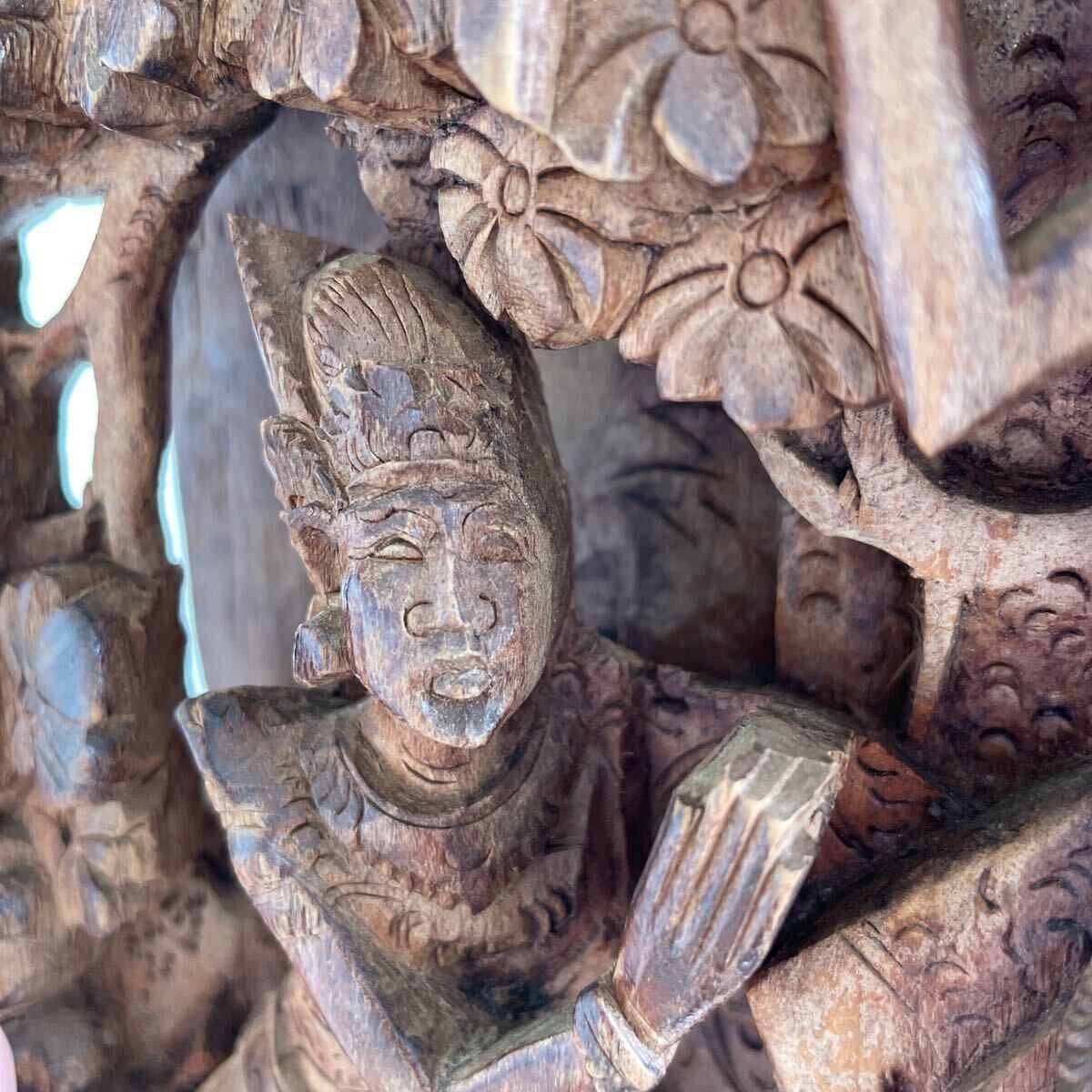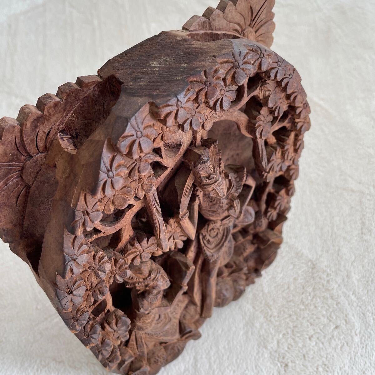 精巧な手彫り 東南アジア 仏教神話 工芸 木彫 壁掛け アート 仏教美術 レリーフ ヴィンテージ インテリア 雑貨 エスニック コレクション