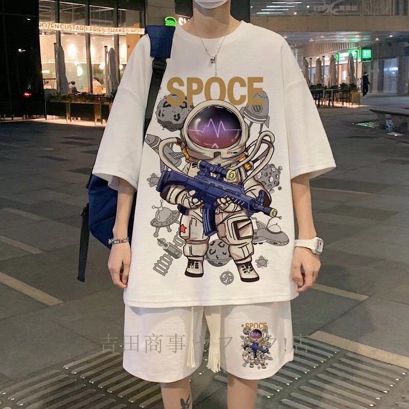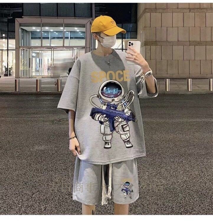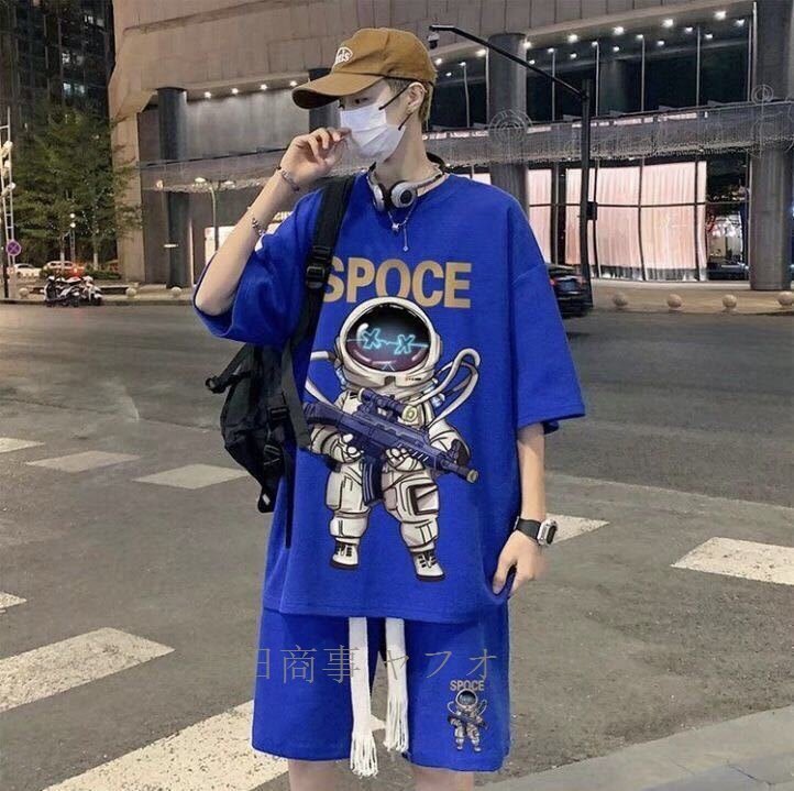 A8150☆新品メンズ 上下セット セットアップ トップス+短パン 2点セット 大きいサイズ プリント 半袖 夏 ゆったり カジュアル