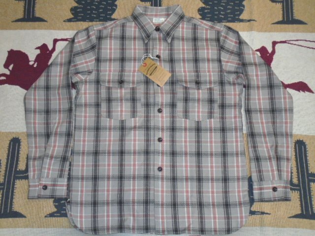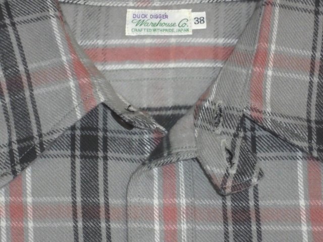 23 ウエアハウス 3022 F柄 グレー 38 チンスト ネルシャツ ノンウォッシュ