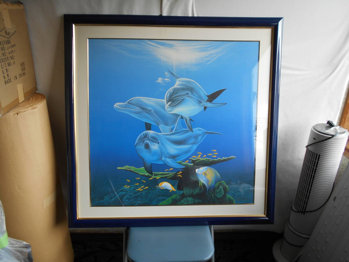 戸川郁夫『オーシャンハイキング』 2/100 100x100cm イルカ 絵