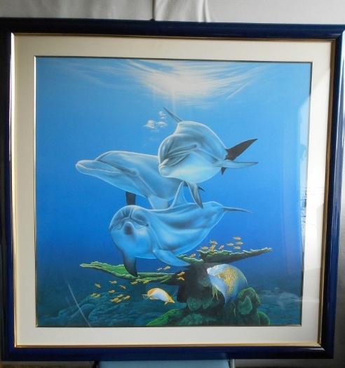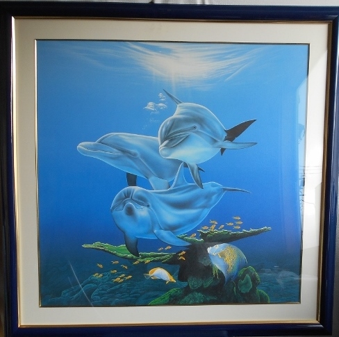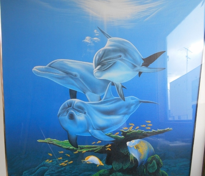 戸川郁夫『オーシャンハイキング』 2/100 100x100cm イルカ 絵
