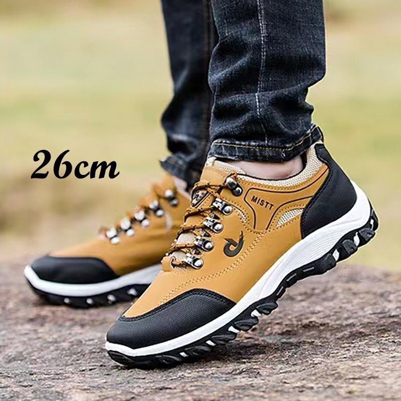 トレッキング アウトドアシューズ メンズ メンズシューズ 紐靴 メンズスニーカー 合成革 幅広 カーキ26cm