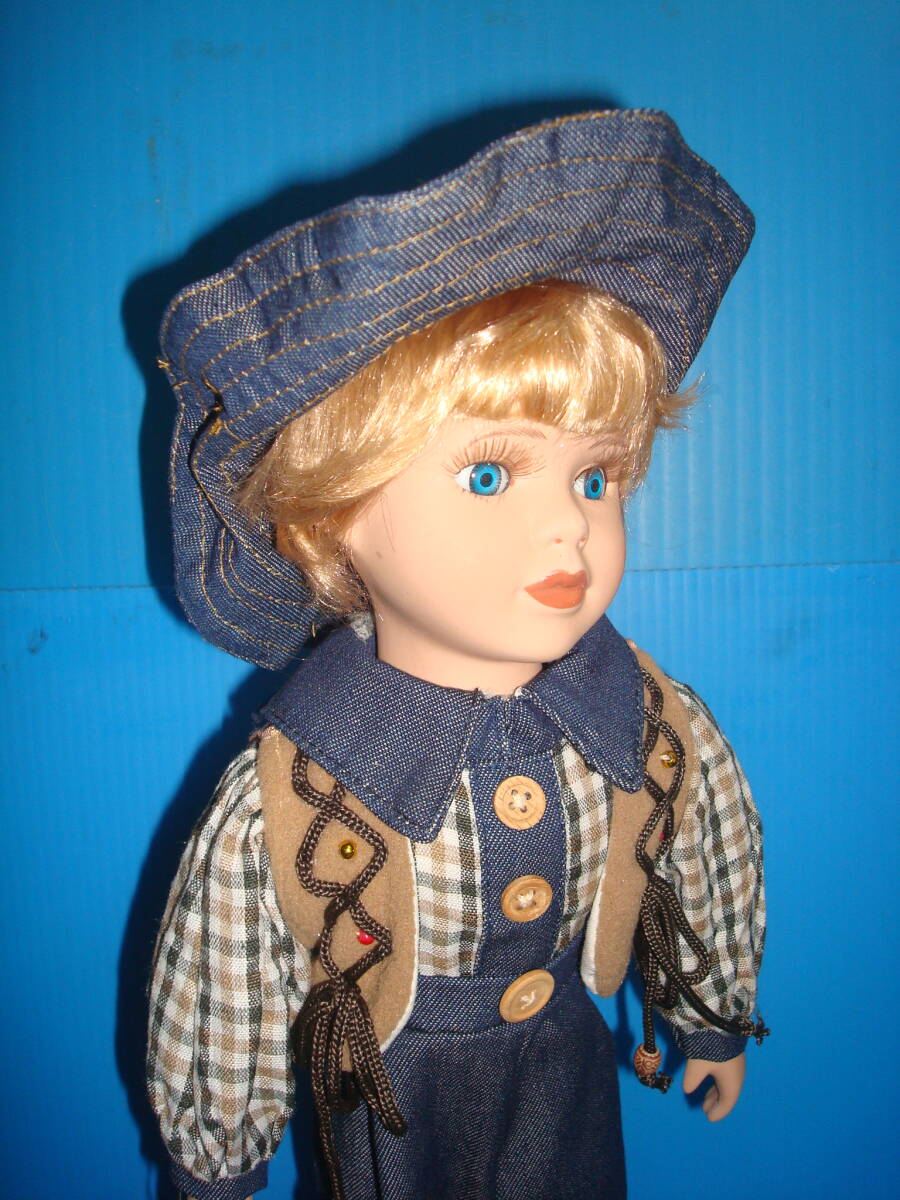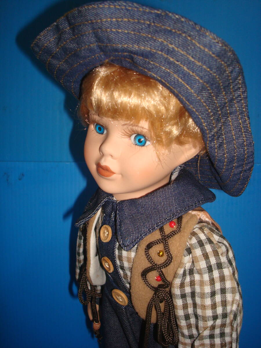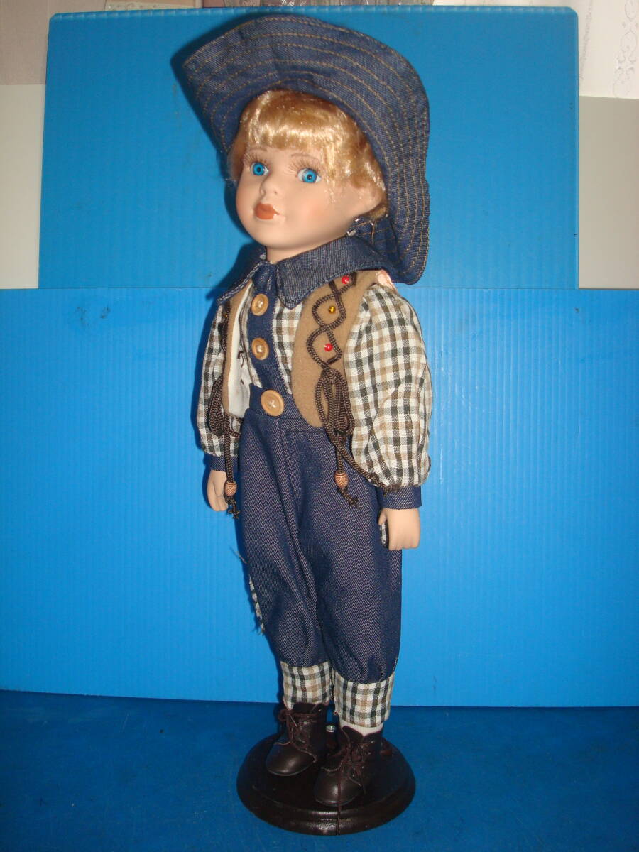 ポーセリングドールになります。スタンド付き、美品です。本体及ぶ洋服は目立った汚れ御座いません。かなり長い間の保管品になります。サイズ H;40cm。尚、収納箱は経年の保管スレあります。商品は画像に写っているものが全てになります。