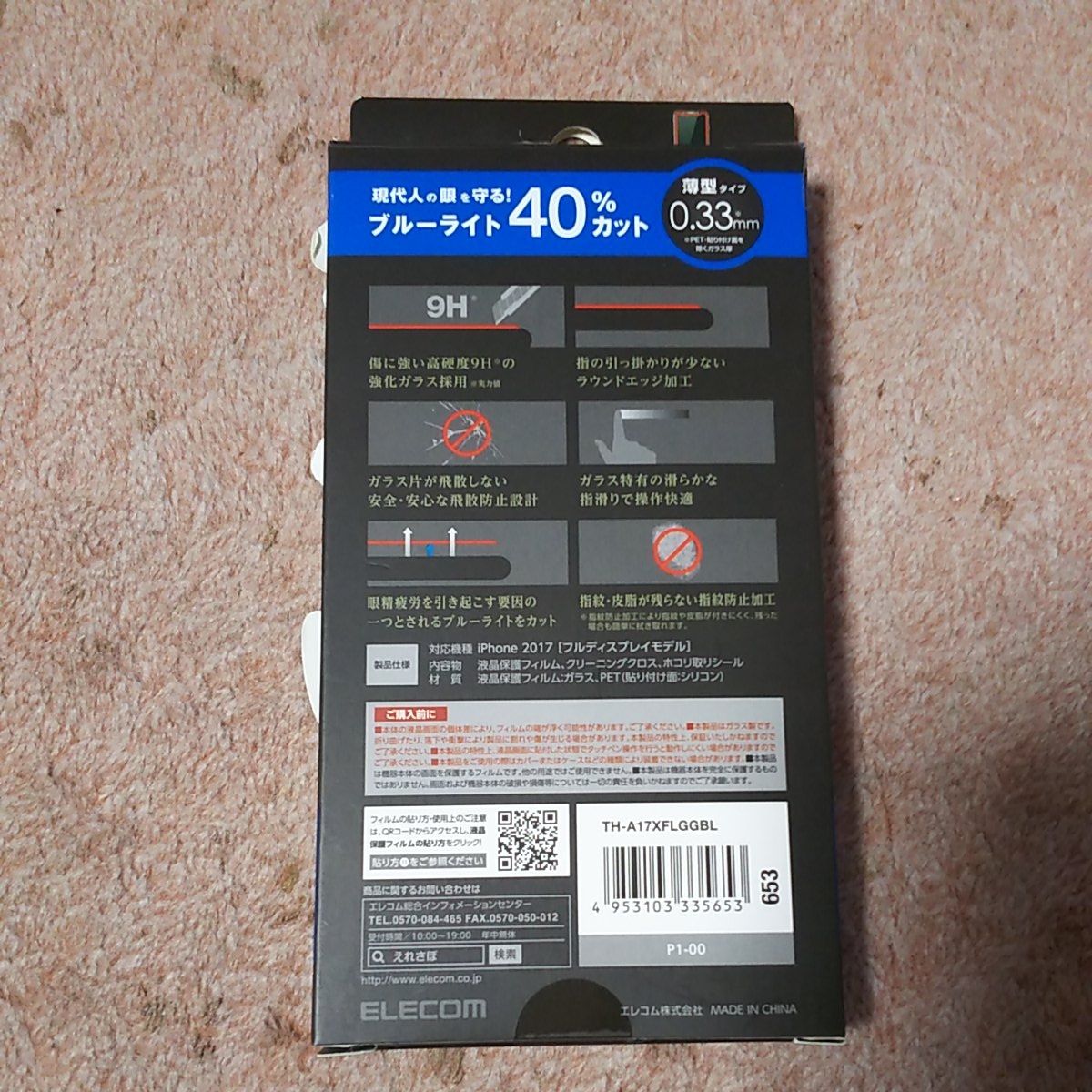◎ELECOM iPhoneX フイルム ガラス ブルーライトカット 0.33mm TH-A17XFLGGBL