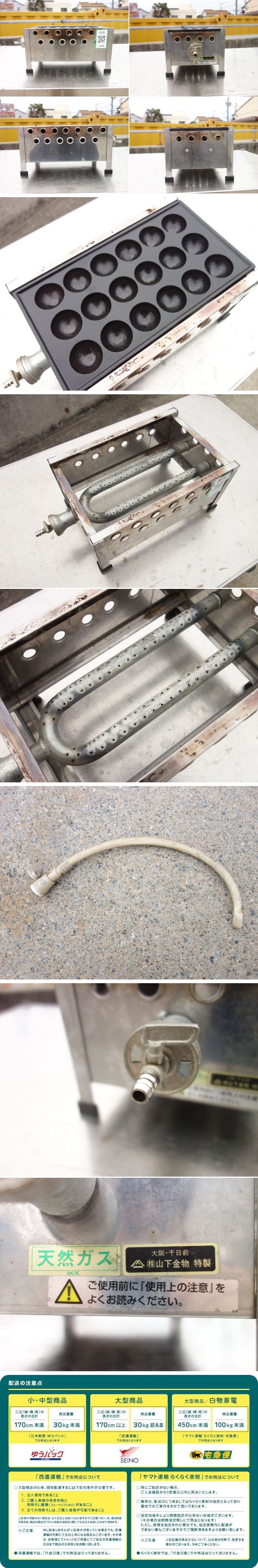 【中古】M▽山下金物 業務用 たこ焼き 明石焼き 玉子焼き 鉄板 卓上 18穴 都市ガス 天然ガス (31046)