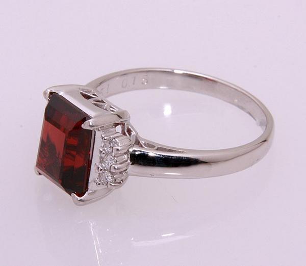 《質屋出品》Pt900★天然ガーネット+ダイアリング★C-3418