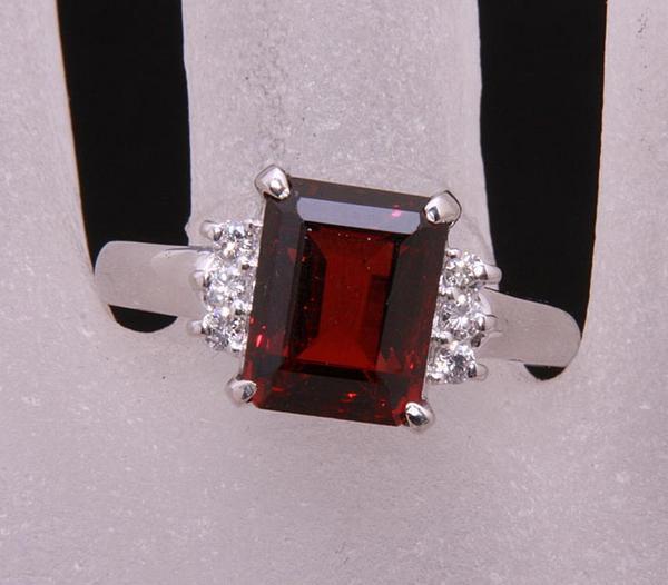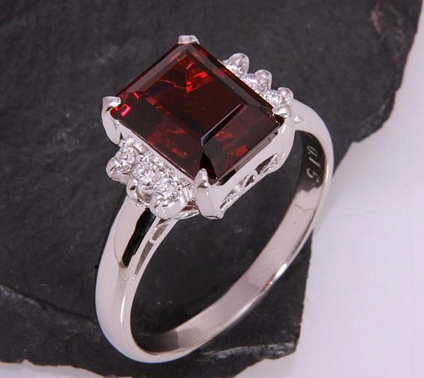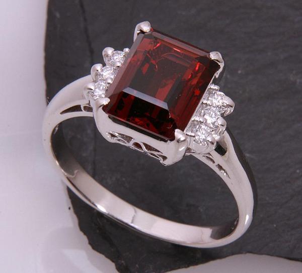 濃く鮮やかなカラーのガーネットと、メレダイアが輝くリングです。