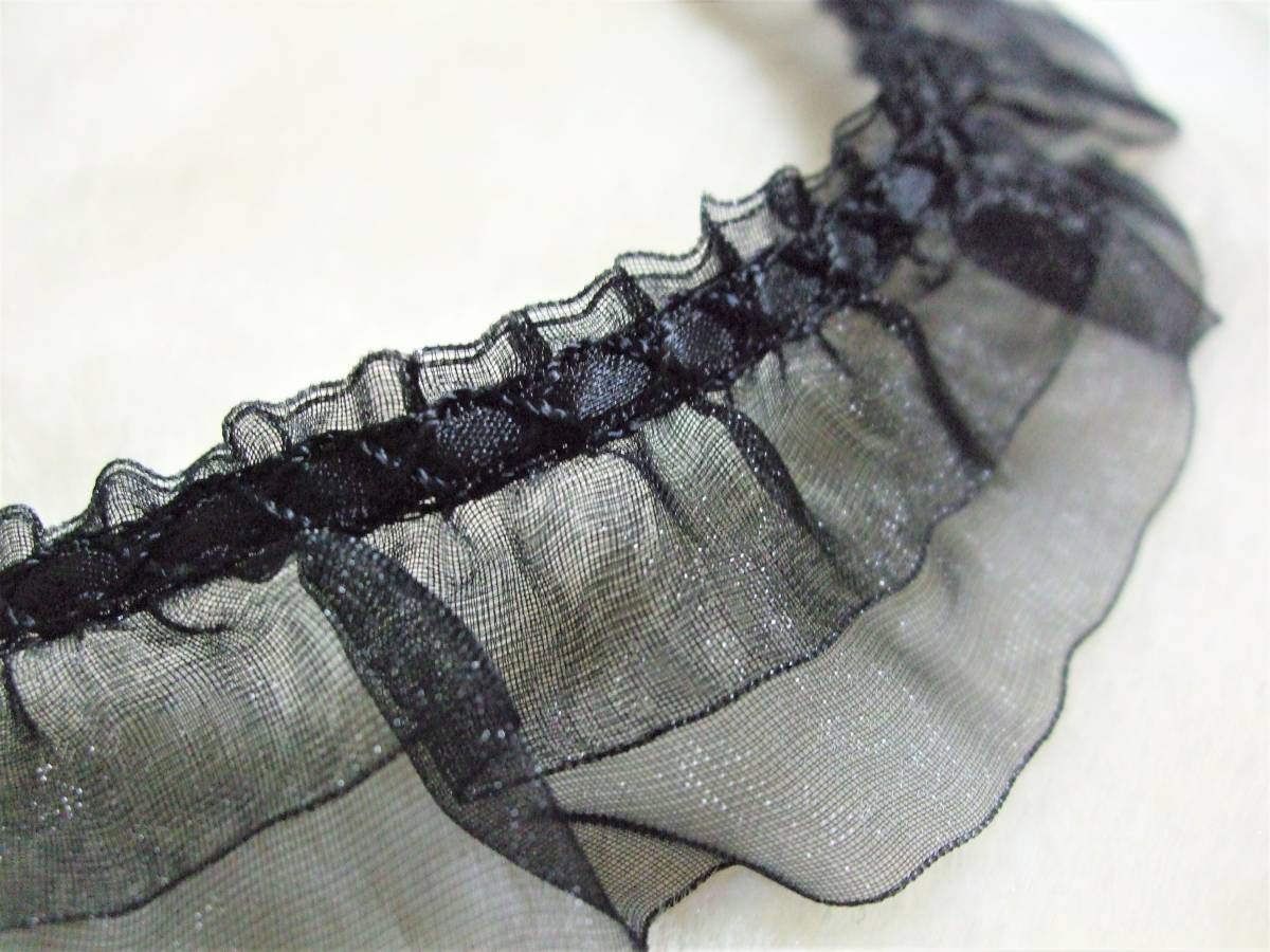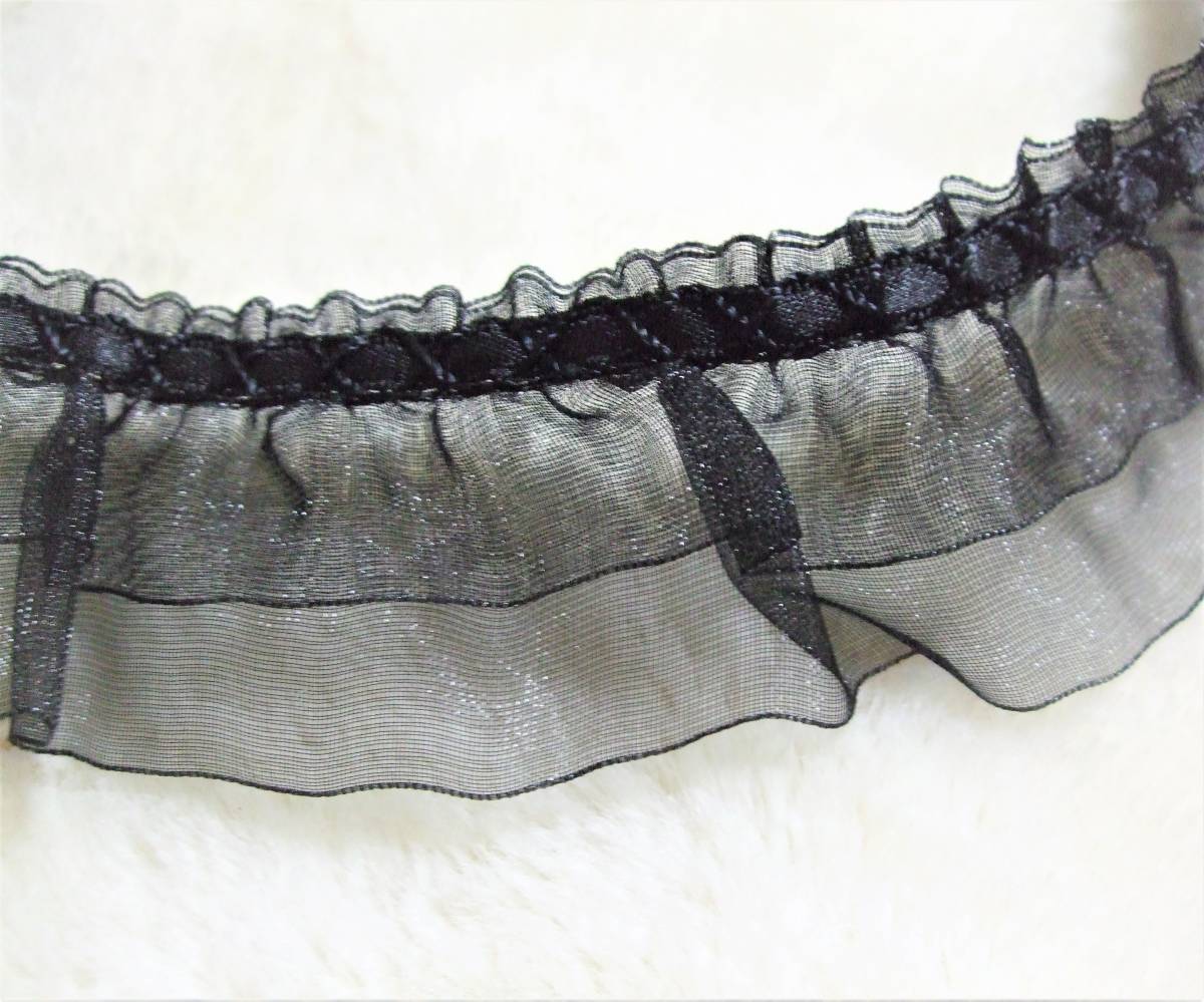 未使用★ オーガンジー タックレース フリル 黒 35㎜ リボン 材料 ハンドメイド 手作り材料 手芸用品 洋裁 裁縫 資材 自宅保管品