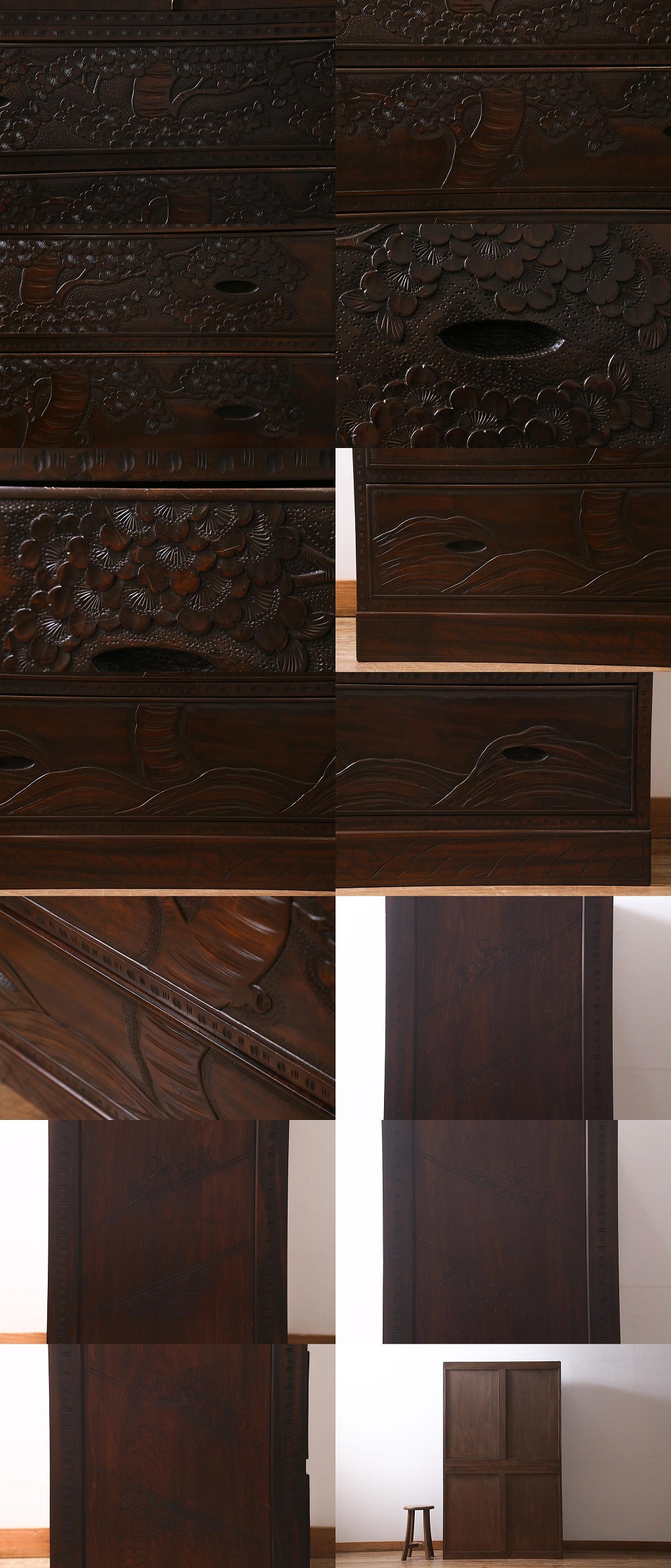 R-039717 ビンテージ家具 中古 伝統工芸 軽井沢彫り 咲き誇る桜の浮き彫りが目を引く重ね衣装箪笥(和タンス、引き出し、衣装盆付き)