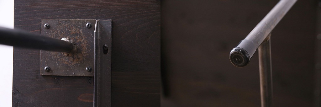 濃い色合いの天板に鉄脚を組み合わせた