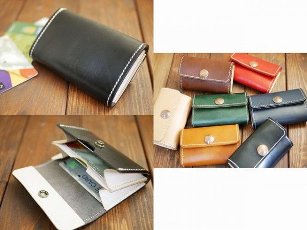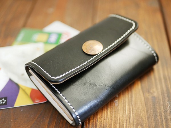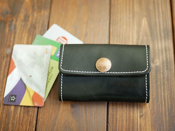 送料無料 1セント 3つ折りレザーカードケース ハンドメイド 本ヌメ lcc24 ブラック