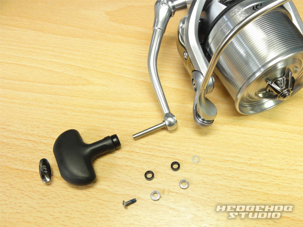 もう1つのベアリングはハンドルノブ内にセットします。この時ピンセットを使うと綺麗に取り付けが行えます。