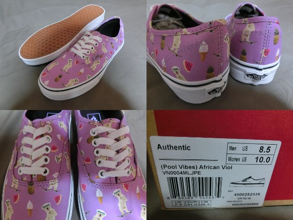 USA購入 激レア 可愛らしいサングラス犬フルーツ ソフトクリーム絵柄 バンズ 【Vans】オーセンティック【Authentic】26.5㌢ キャンバス素材