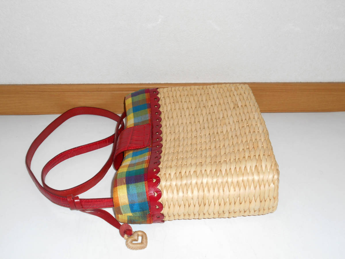 ブライトン Brighton カゴ × レザー ショルダーバッグ チェック柄 素材はカゴ×本革です。